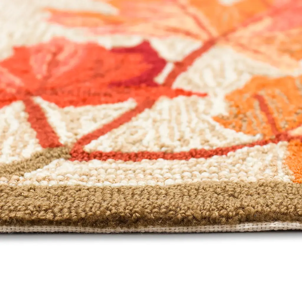 Our hand-hooked Indoor/Outdoor Falling Leaves Border Rug will add beauty, elegance and color to any space. Vivid shades of orange and rust are layered against a finely textured background for a stunning display that forms a perfect foundation for your decor. The rug is flat woven, weather-resistant, and treated for added fade resistance, making this rug perfect for indoor or outdoor placement. Soft and durable, this rug is ideal for your patio, sun room, or those high traffic areas such as your kitchen, living room, entryway, or dining room. Hose clean; air dry completely. Pattern varies slightly by size. Rug pile is approx. ¼”. Sizes are approximate.