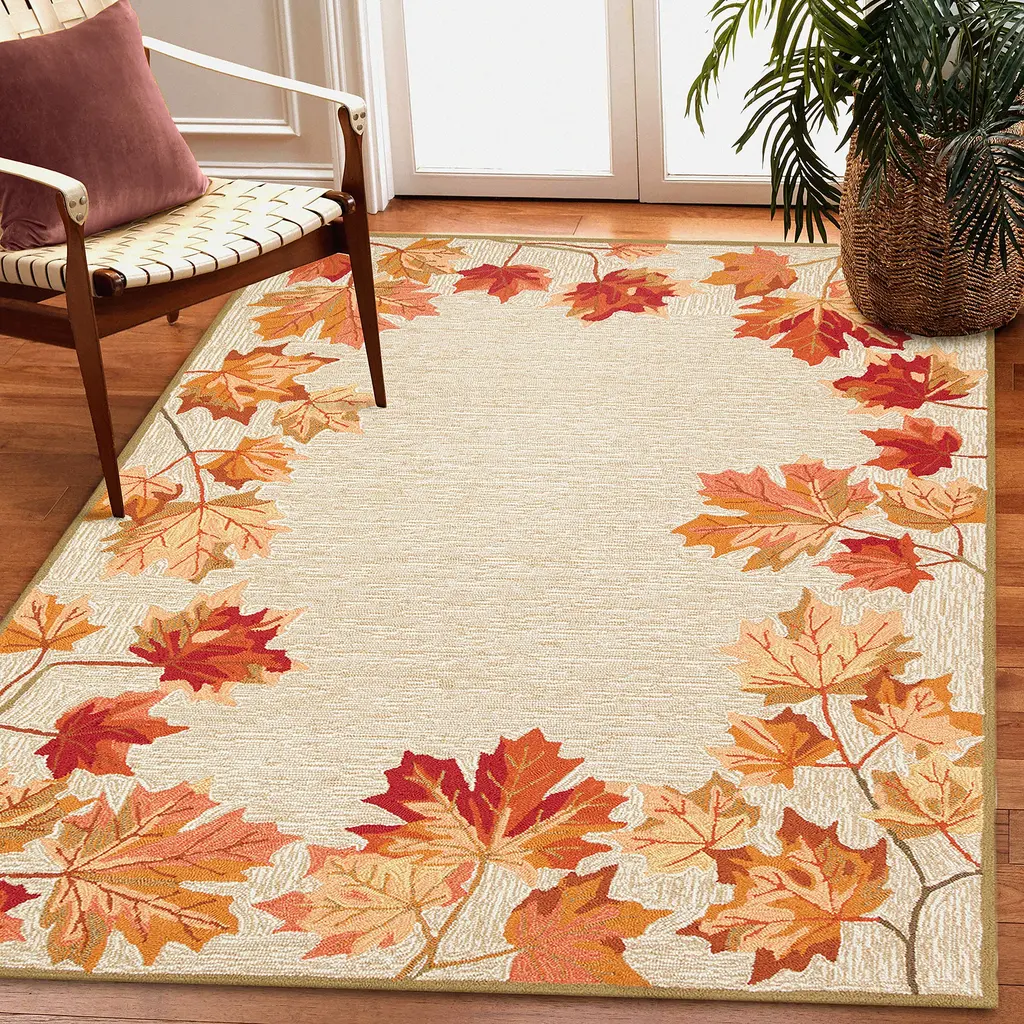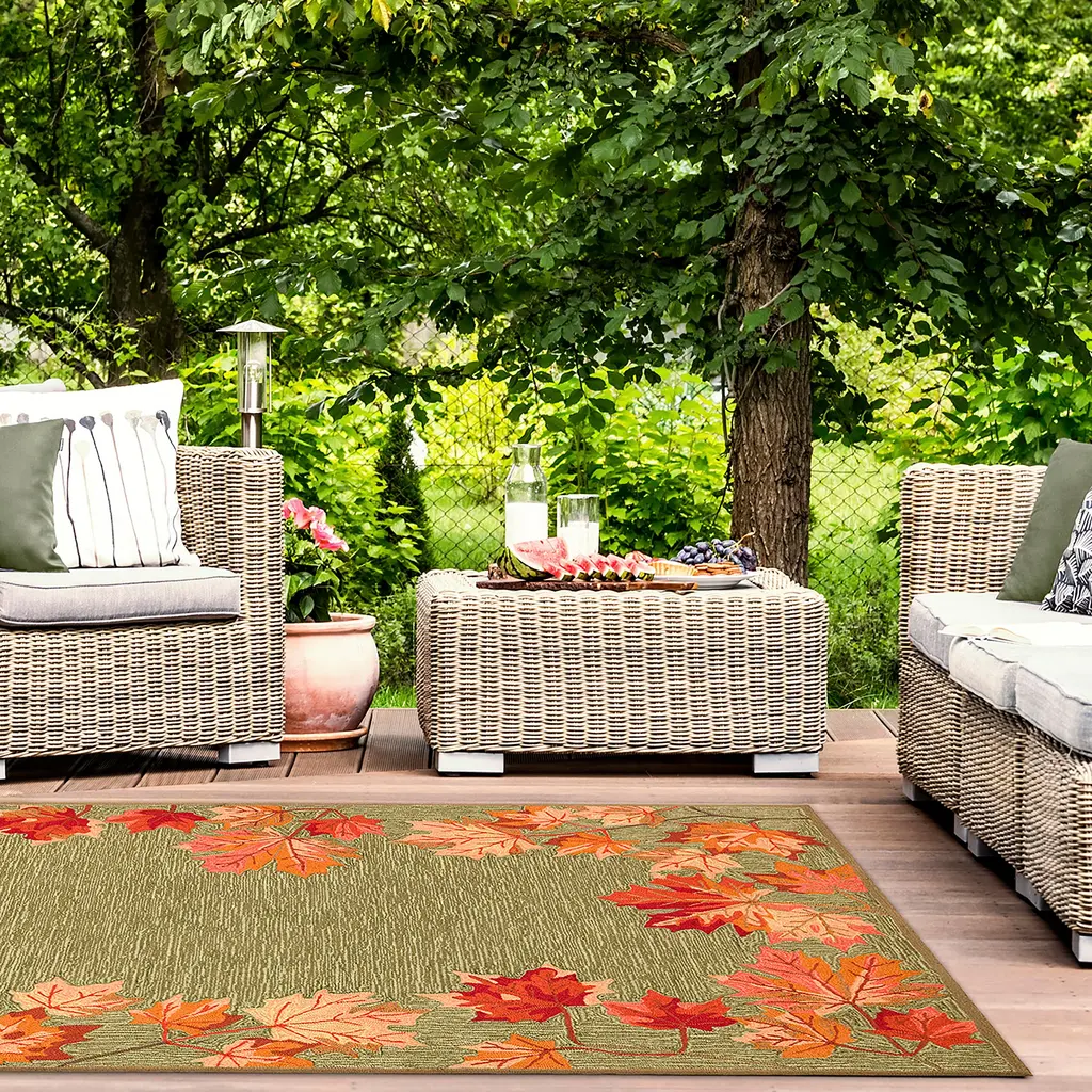 Indoor/outdoor Falling Leaves Border Rug, 5' X 7'6"