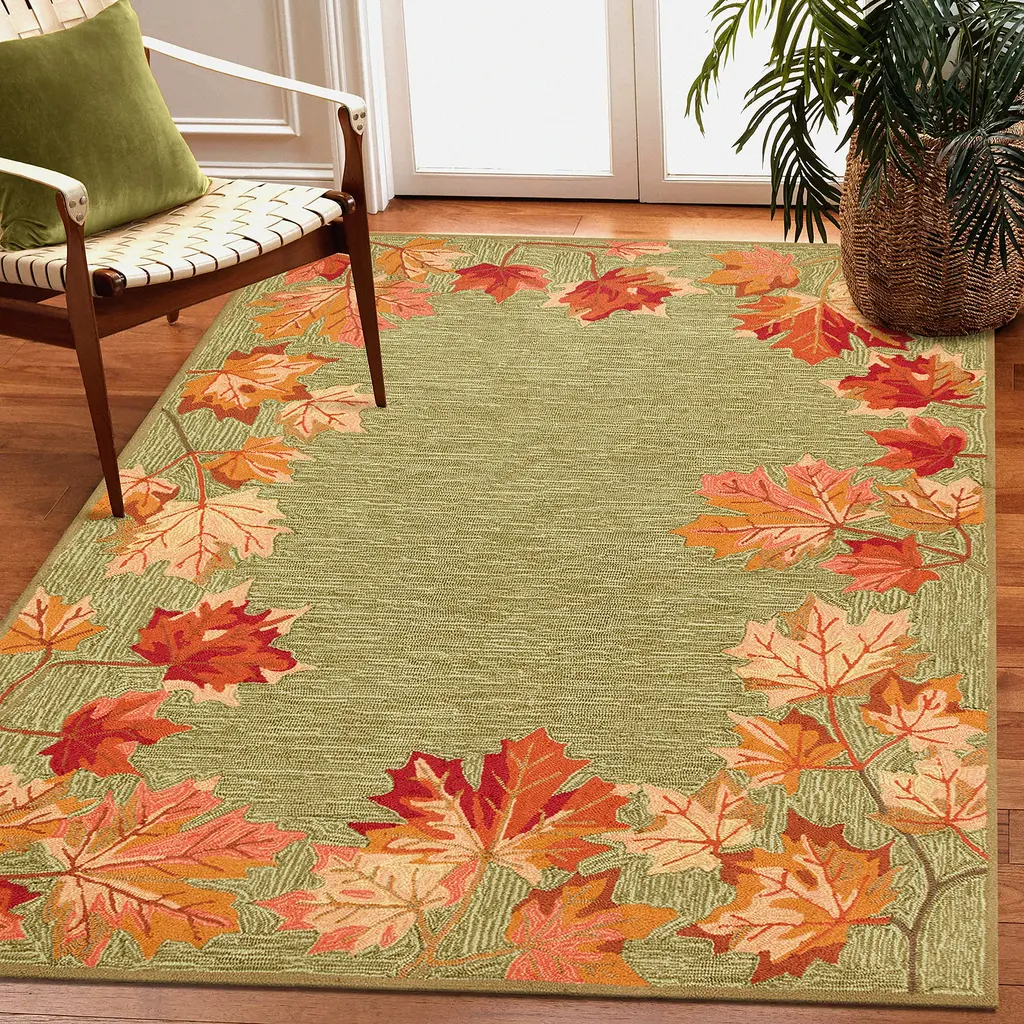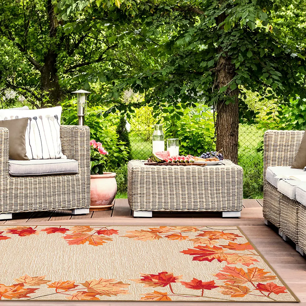 Indoor/outdoor Falling Leaves Border Rug, 7'6" X 9'6"