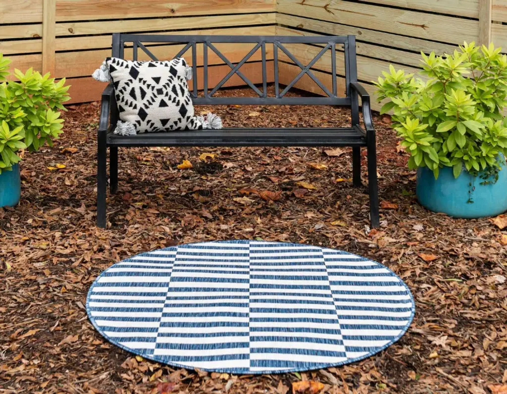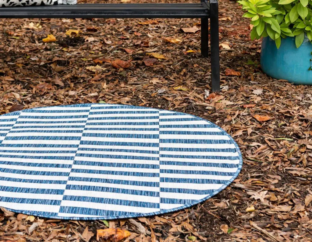 Indoor/outdoor Glimmer Round 4' Round Deep Sea Area Rug