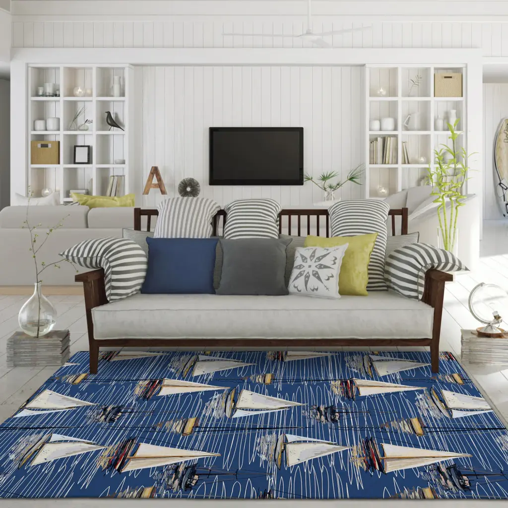 Harbor is a fun, beach and coastal themed inspired collection that gives you all the vibes of summer sunshine. Featuring an ultra-soft and ultra thin pile, each rug is made with 100% polyester pile complete with a non-skid backing. Final crafting in USA using domestic processing on an imported substrate. They are UV Stabilized for indoor and outdoor spaces. Shake out or use straight suction with vacuum, do not use a beater bar. Machine washable in cold water and air dry, some sizes may be too large for a residential washing machine and is family and pet friendly.
