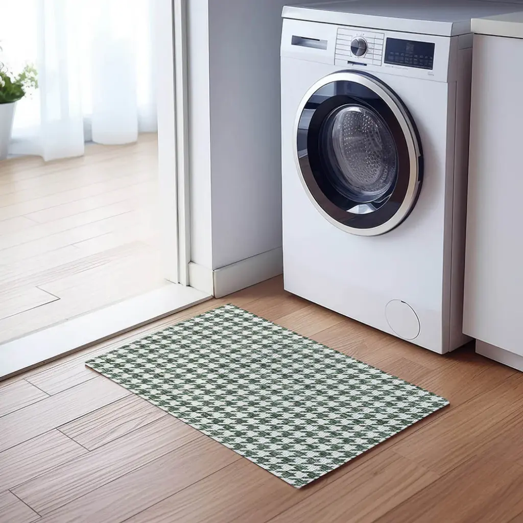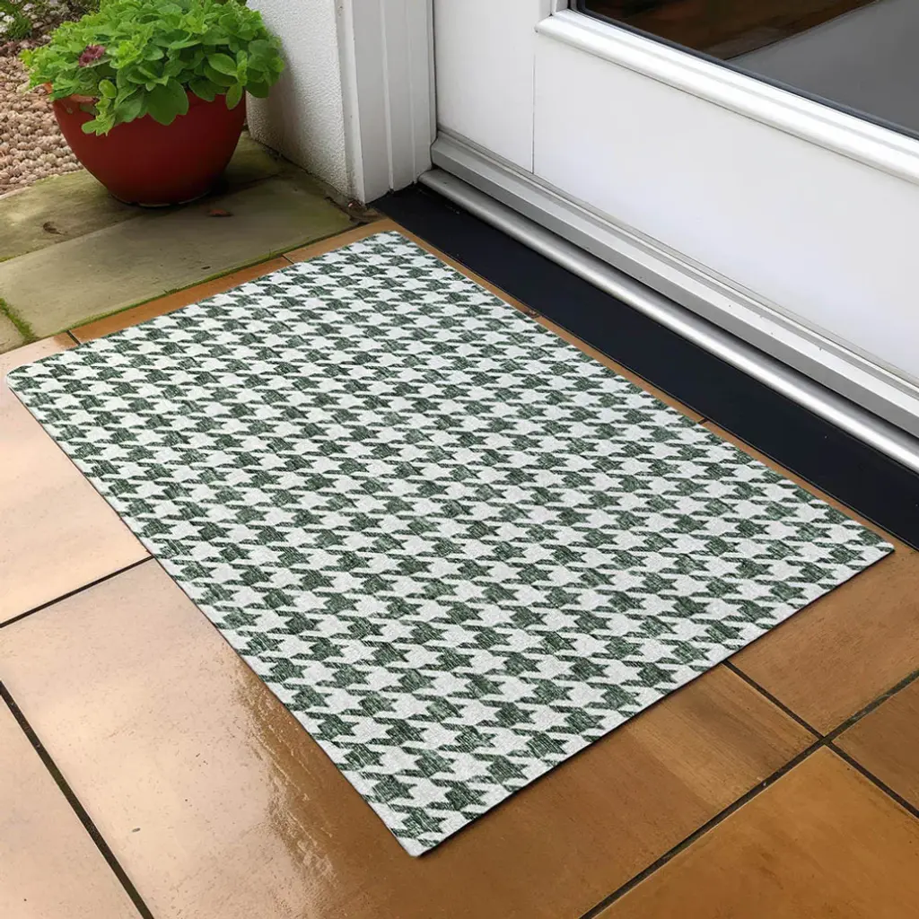 Transform your home with our family and pet-friendly rugs featuring a timeless houndstooth pattern. Designed for convenience, these rugs are UV stabilized for indoor or outdoor use, allowing you to enjoy them in various areas of your home. The ultra-thin, flat-woven chenille profile ensures quicker air-drying after washing, saving you time and effort. Rest assured, the incorporated non-skid backing keeps the rugs securely in place, making them ideal for active households with pets and kids. Machine-Washable For Sizes Under 5� X 7�6�. For Sizes Larger Than 5� X 7�6�, It Is Highly Suggested Using A Commercial Sized Washing Machine. Large Sizes Are Not Suggested For Smaller Home Washing Machines.