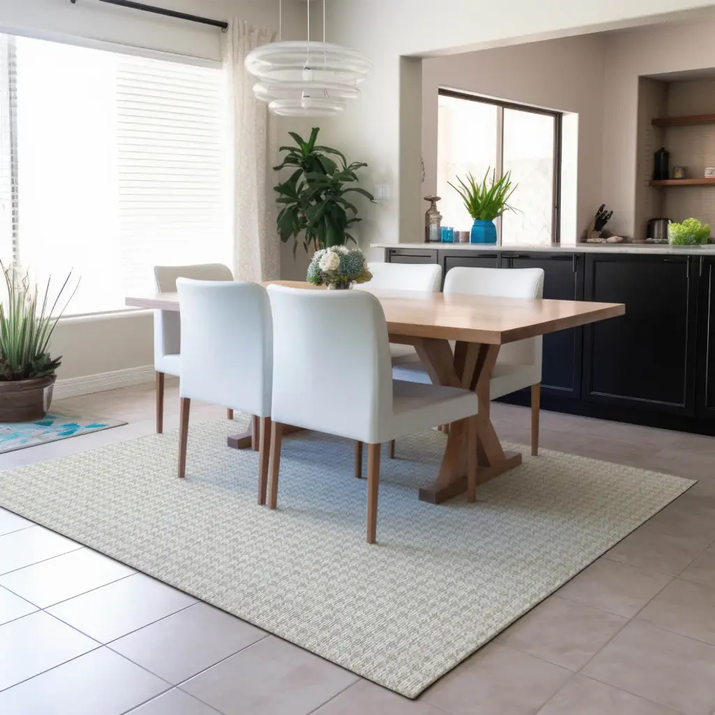 Transform your home with our family and pet-friendly rugs featuring a timeless houndstooth pattern. Designed for convenience, these rugs are UV stabilized for indoor or outdoor use, allowing you to enjoy them in various areas of your home. The ultra-thin, flat-woven chenille profile ensures quicker air-drying after washing, saving you time and effort. Rest assured, the incorporated non-skid backing keeps the rugs securely in place, making them ideal for active households with pets and kids. Machine-Washable For Sizes Under 5� X 7�6�. For Sizes Larger Than 5� X 7�6�, It Is Highly Suggested Using A Commercial Sized Washing Machine. Large Sizes Are Not Suggested For Smaller Home Washing Machines.