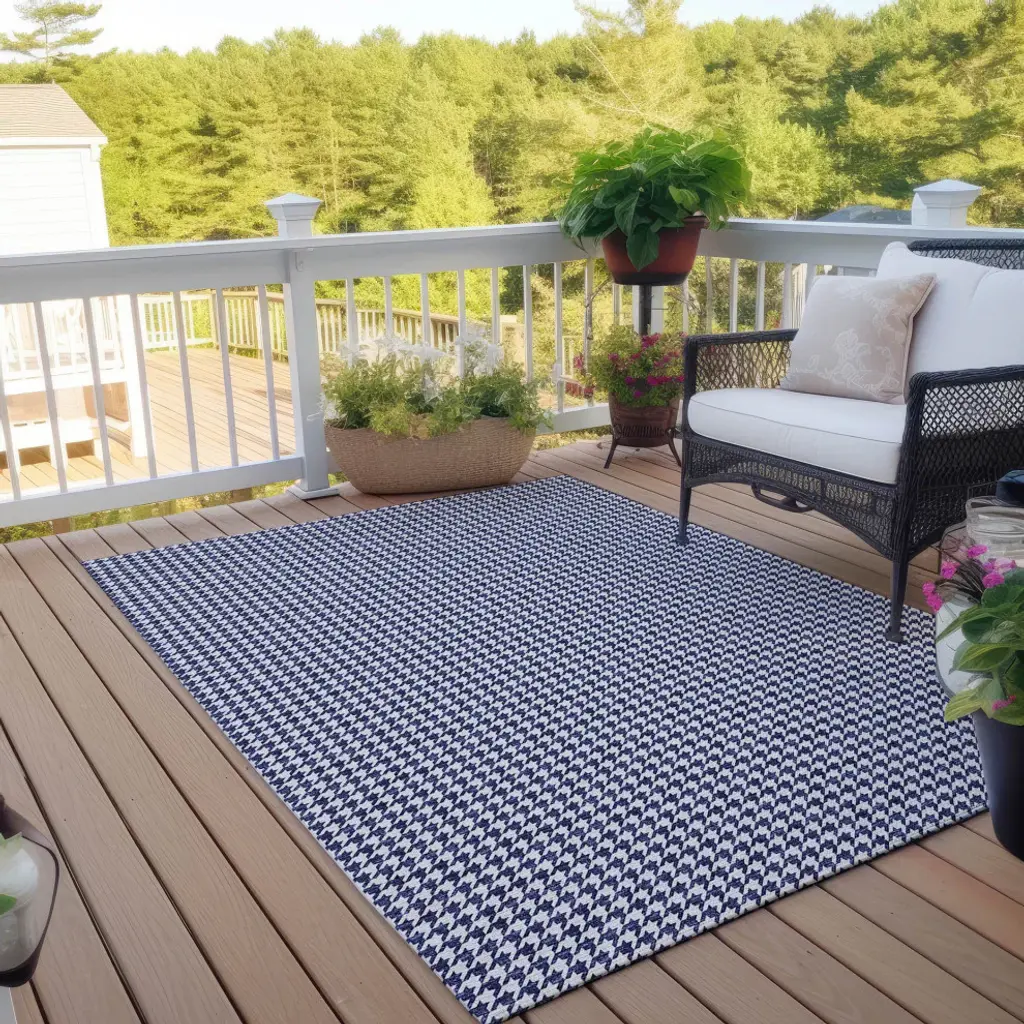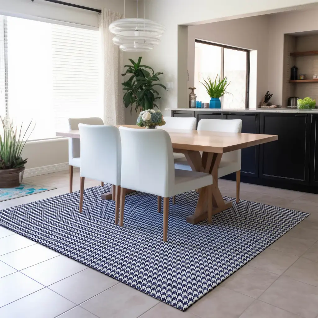 Transform your home with our family and pet-friendly rugs featuring a timeless houndstooth pattern. Designed for convenience, these rugs are UV stabilized for indoor or outdoor use, allowing you to enjoy them in various areas of your home. The ultra-thin, flat-woven chenille profile ensures quicker air-drying after washing, saving you time and effort. Rest assured, the incorporated non-skid backing keeps the rugs securely in place, making them ideal for active households with pets and kids. Machine-Washable For Sizes Under 5� X 7�6�. For Sizes Larger Than 5� X 7�6�, It Is Highly Suggested Using A Commercial Sized Washing Machine. Large Sizes Are Not Suggested For Smaller Home Washing Machines.