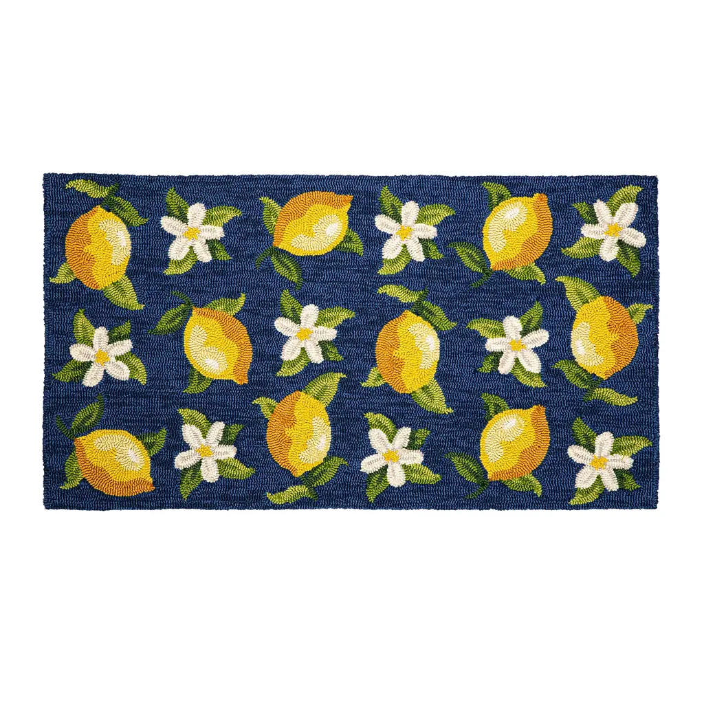 Indoor/outdoor Hooked Polypropylene Lemon Blossoms Accent Rug 24"x42"