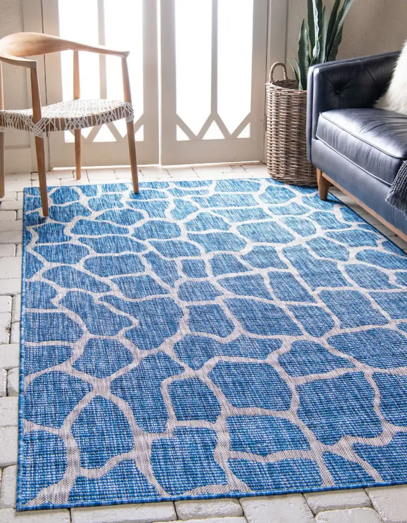 Indoor/outdoor Joyous 9'x12' Rectangle Deep Sea Area Rug