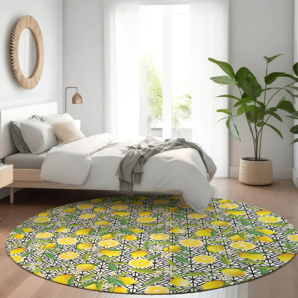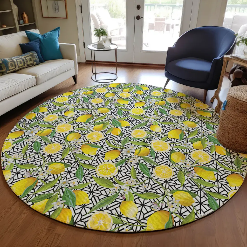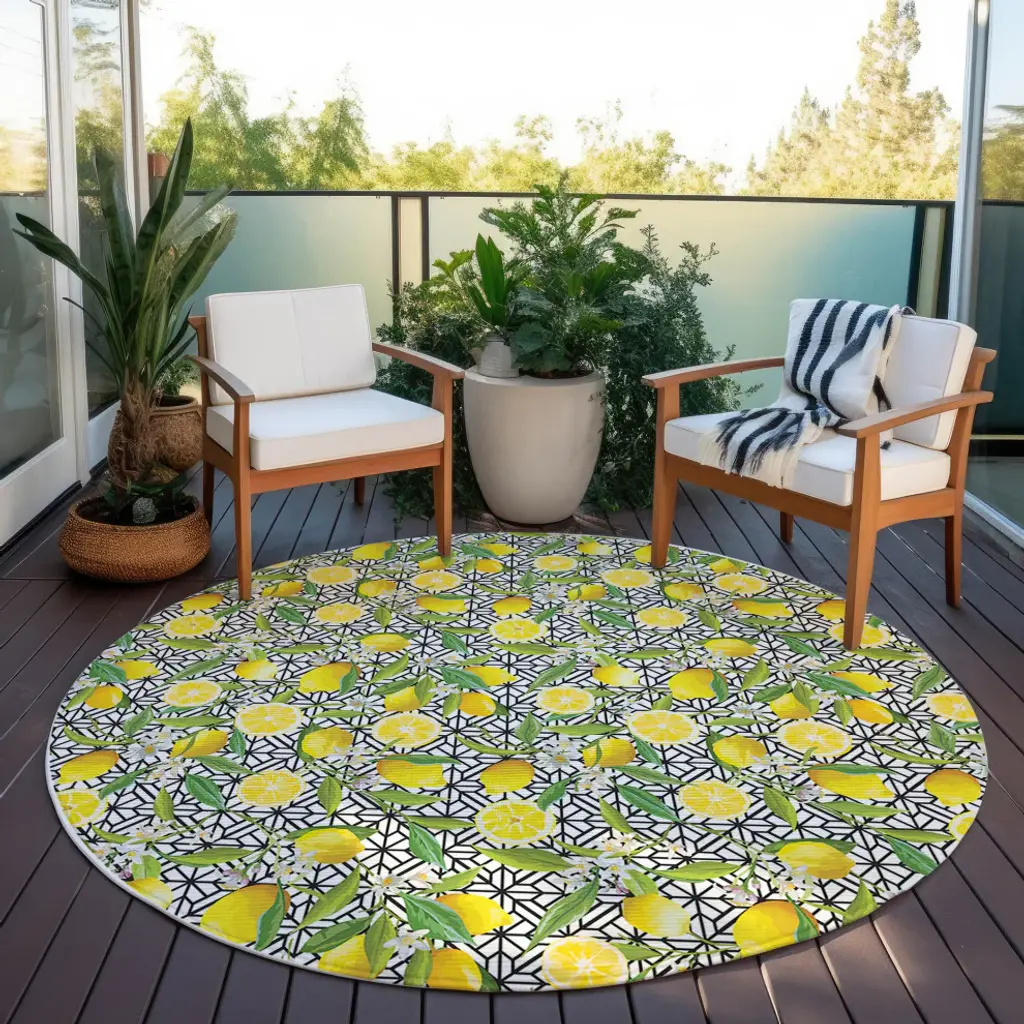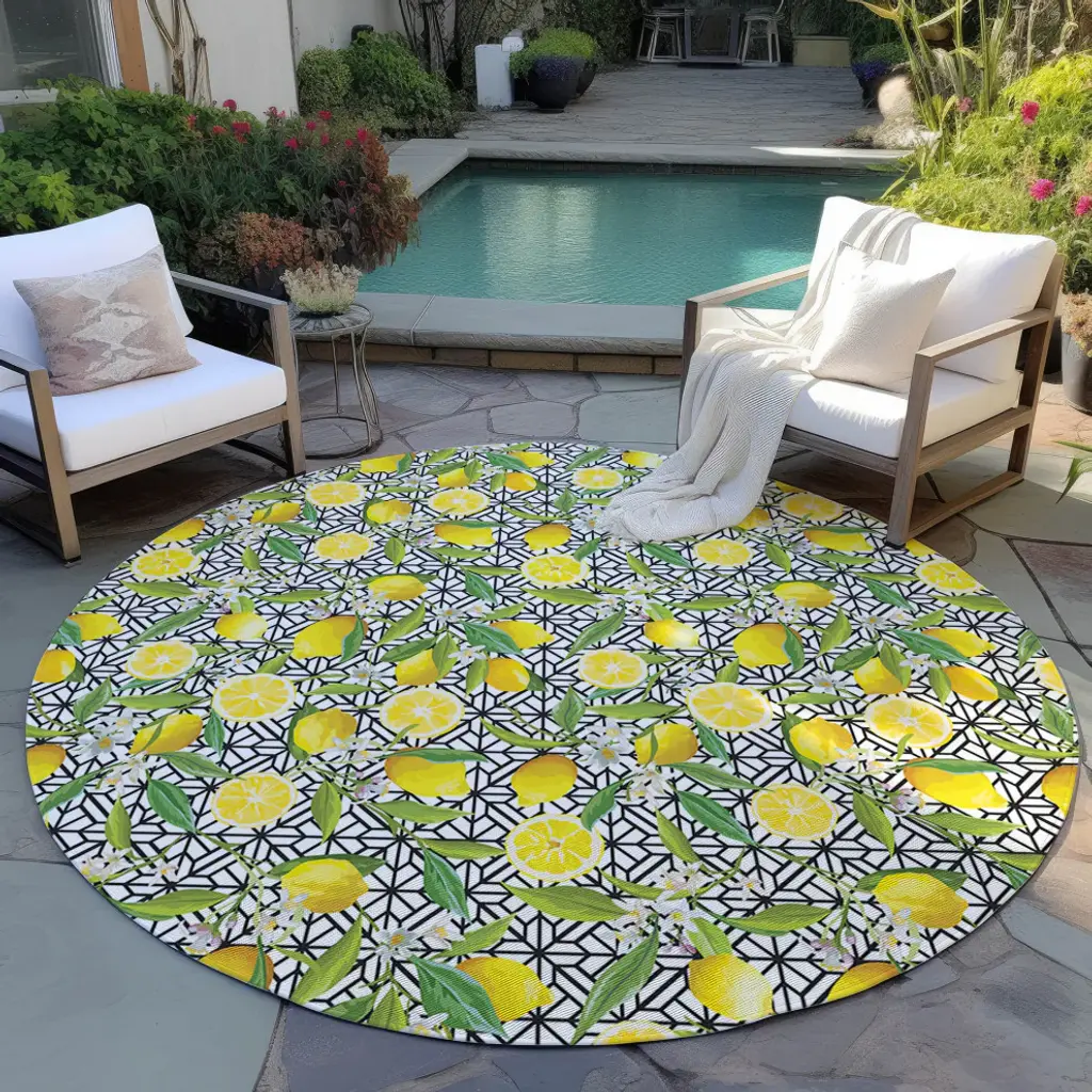 Indoor/outdoor Kendall Ke5 Ivory Machine Washable 8' X 8' Round Rug