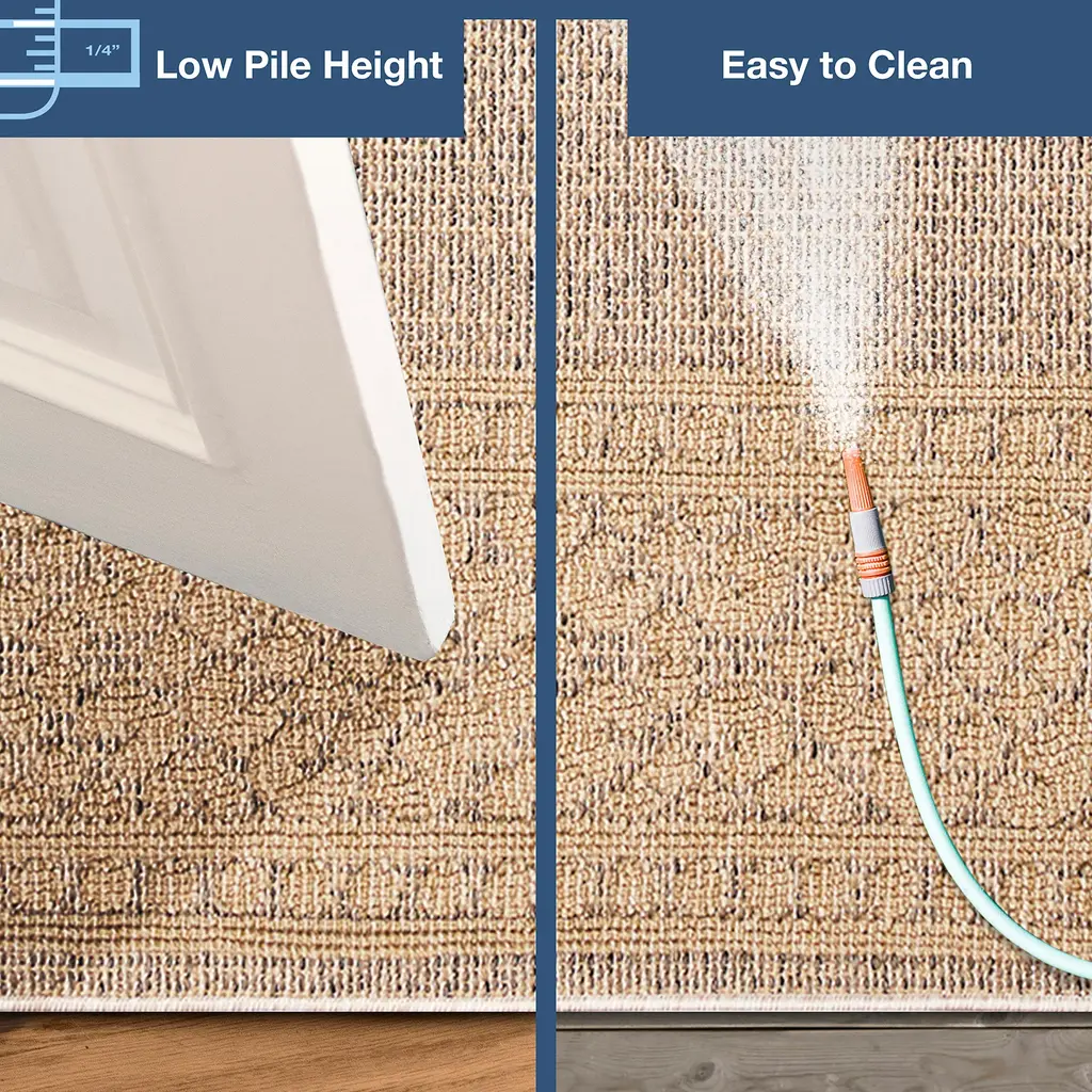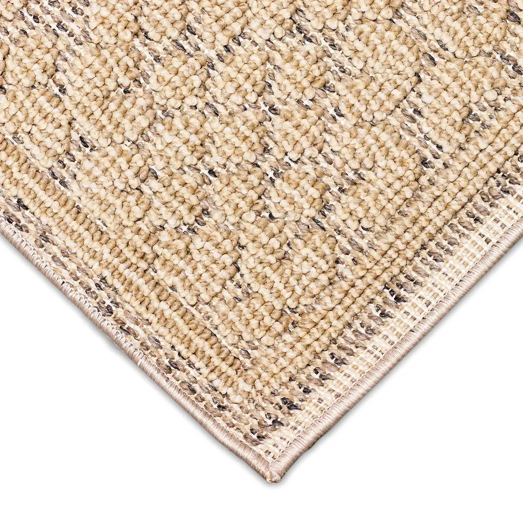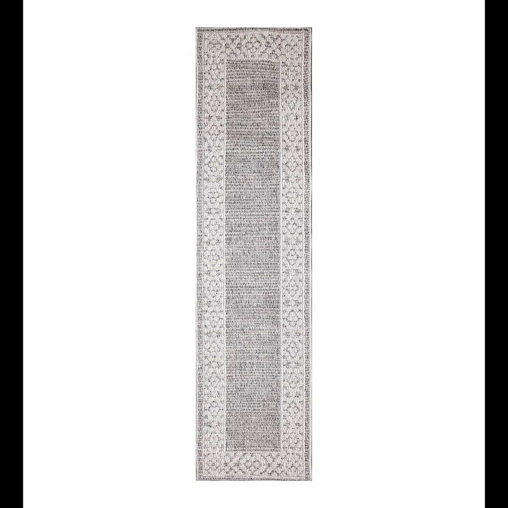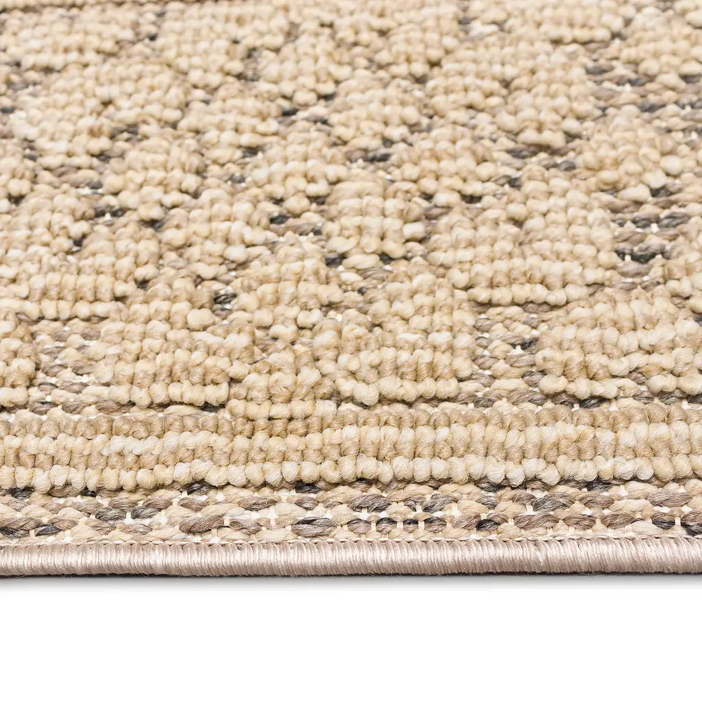 Add rich texture and luxurious comfort to any space with our Indoor/Outdoor Kitty Hawk Border Rug. Subtle, yet striking, this area rug features a thick leopard print border, surrounding a textured center. Durable and stylish, this rug creates a relaxed, easy vibe that works with any decor in your home. The cushioned material is weather resistant, UV stabilized for enhanced fade resistance, durable and ideal for those high traffic areas such as your patio, sunroom, kitchen, entryway, hallway, living room and bedroom; making this the ideal indoor or outdoor rug. Hose clean; air dry completely. Pattern varies slightly by size. Rug pile is approx. ⅛”. Sizes are approximate.