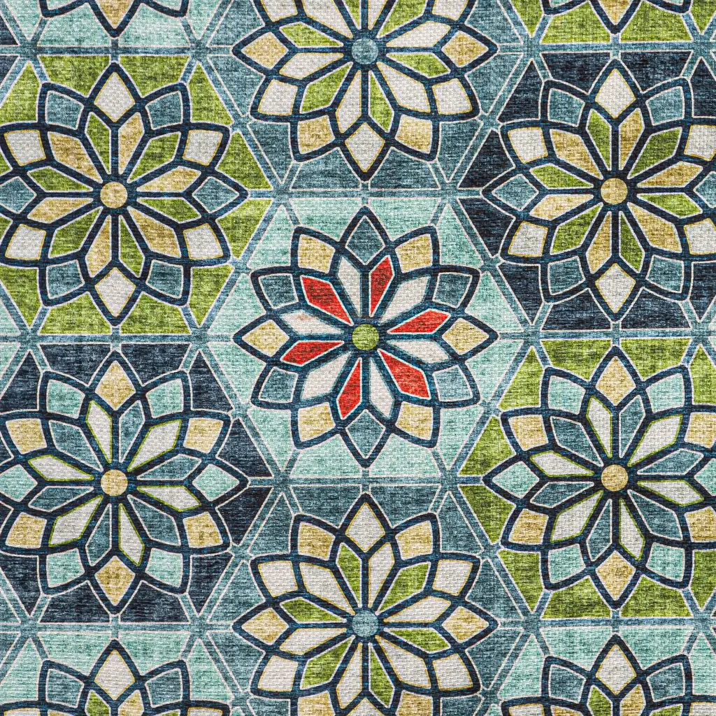 Indoor/outdoor Machine Washable Green Kaleidoscope Printed Rug, 5' X 7'