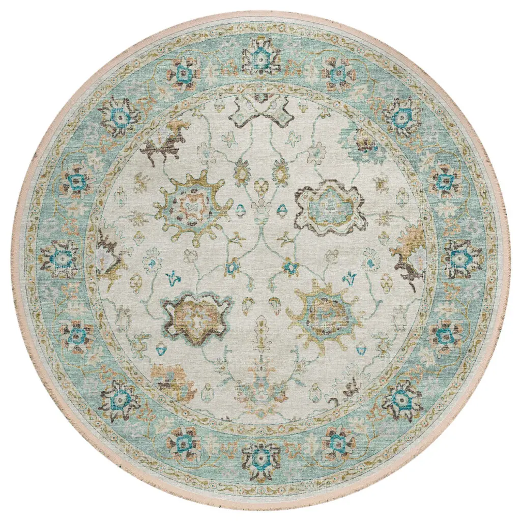 Indoor/outdoor Marbella Mb6 Ivory Machine Washable 6' X 6' Round Rug
