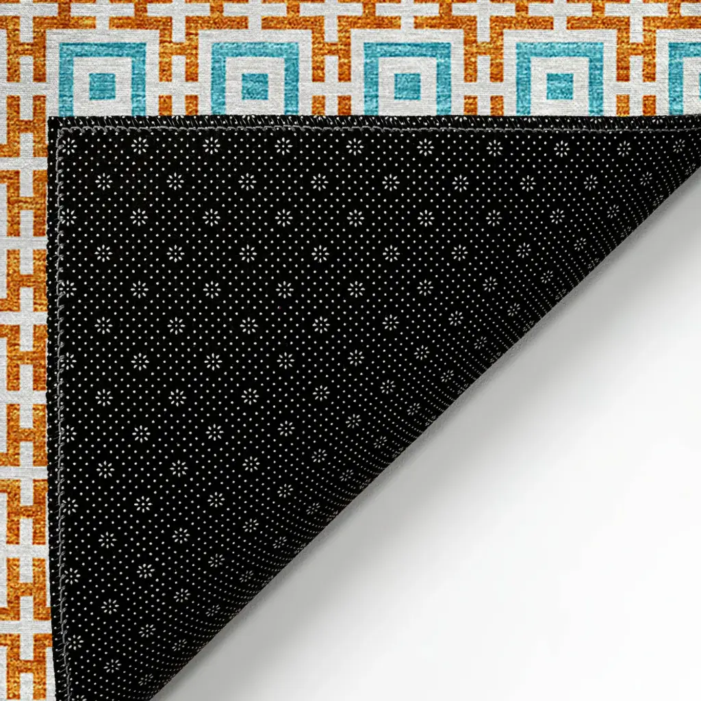 Upgrade your space with our hip and modern squares patterned rugs that add a contemporary touch to any room. Designed with versatility in mind, these rugs are UV stabilized for indoor and outdoor use, ensuring their vibrant colors withstand the test of time. The ultra-thin, flat-woven chenille profile not only offers a sleek and stylish look but also allows for quicker air-drying after washing, making them convenient for busy households. Plus, with the incorporated non-skid backing, these rugs provide a safe and stable surface, perfect for your family and pets. Machine-Washable For Sizes Under 5� X 7�6�. For Sizes Larger Than 5� X 7�6�, It Is Highly Suggested Using A Commercial Sized Washing Machine. Large Sizes Are Not Suggested For Smaller Home Washing Machines.