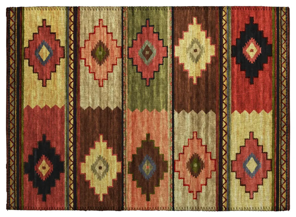 Phoenix collection has great casual southwestern lodge feel. Featuring an ultra-soft and ultra thin pile, each rug is made with 100% polyester pile complete with a non-skid backing. Final crafting in USA using domestic processing on an imported substrate. They are UV Stabilized for indoor and outdoor spaces. Machine washable in cold water and air dry, some sizes may be too large for a residential washing machine and is family and pet friendly.