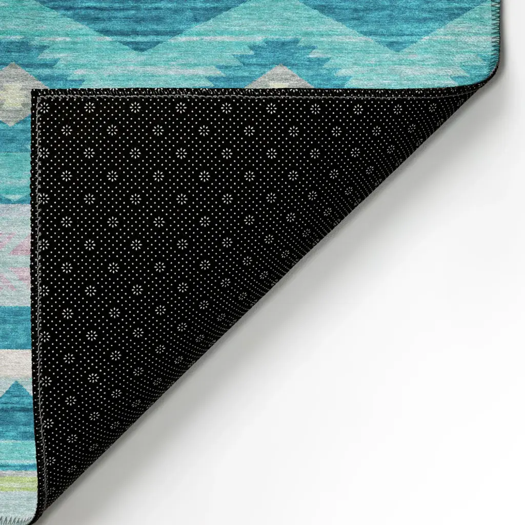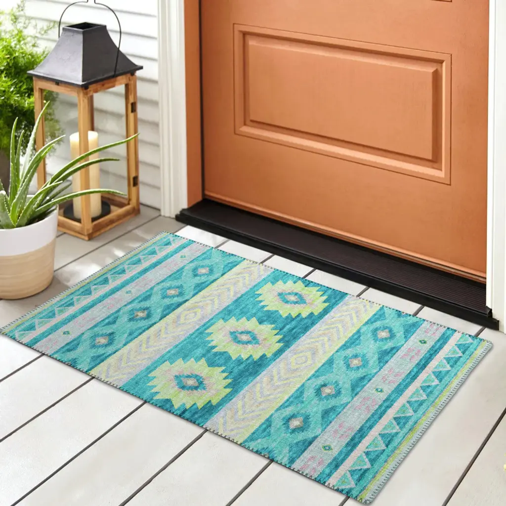 Indoor/outdoor Phoenix Ph3 Teal Machine Washable 1'8" X 2'6" Rug