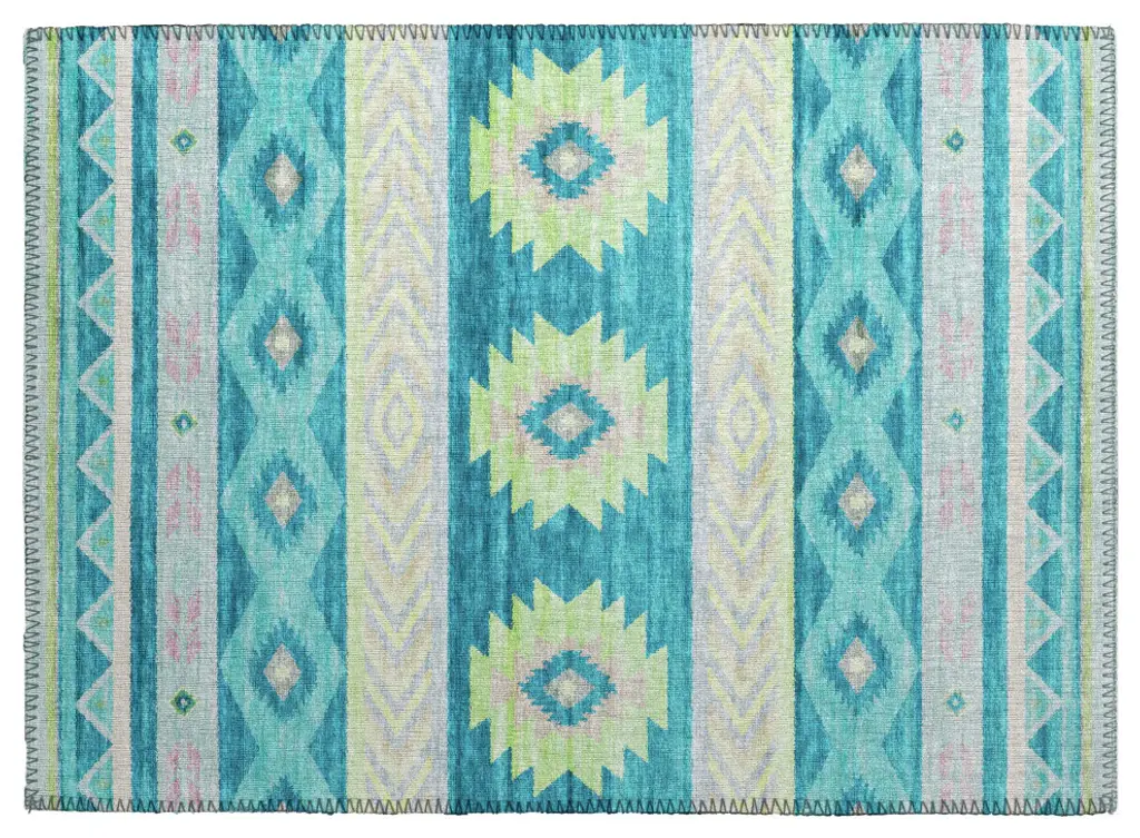 Phoenix collection has great casual southwestern lodge feel. Featuring an ultra-soft and ultra thin pile, each rug is made with 100% polyester pile complete with a non-skid backing. Final crafting in USA using domestic processing on an imported substrate. They are UV Stabilized for indoor and outdoor spaces. Machine washable in cold water and air dry, some sizes may be too large for a residential washing machine and is family and pet friendly.