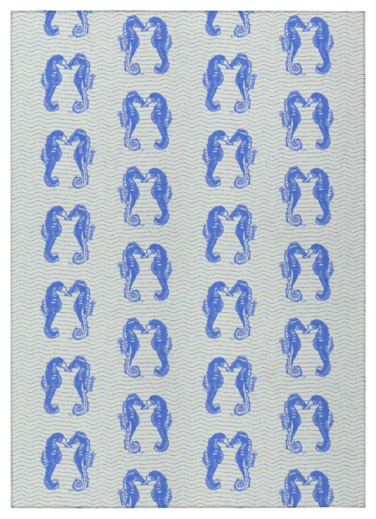 Remarkable Seabreeze collection has been created to inspire tranquility. Wow your guests with these versatile casual coastal rugs, stylish flat weave rug features vibrant colors with gradient movement in a variety of natural beach mosaic shapes and patterns. Featuring an ultra-soft and ultra thin pile, each rug is made with 100% polyester pile complete with a non-skid backing. Final crafting in USA using domestic processing on an imported substrate. They are UV Stabilized for indoor and cover outdoor spaces. Shake out or use straight suction with vacuum, do not use a beater bar. Machine washable in cold water and air dry, some sizes may be too large for a residential washing machine and is family and pet friendly.
