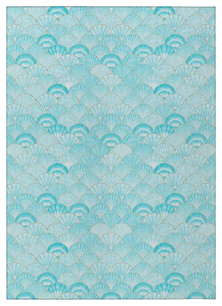 Indoor/outdoor Seabreeze Sz2 Teal Machine Washable 1'8" X 2'6" Rug