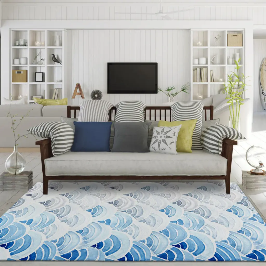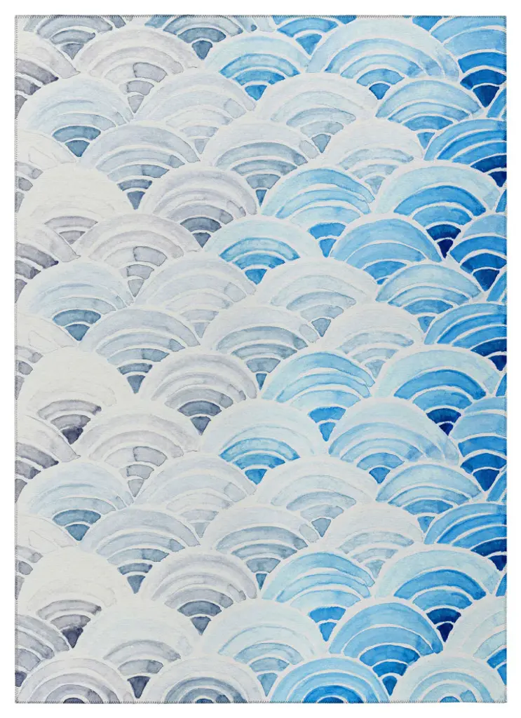 Remarkable Seabreeze collection has been created to inspire tranquility. Wow your guests with these versatile casual coastal rugs, stylish flat weave rug features vibrant colors with gradient movement in a variety of natural beach mosaic shapes and patterns. Featuring an ultra-soft and ultra thin pile, each rug is made with 100% polyester pile complete with a non-skid backing. Final crafting in USA using domestic processing on an imported substrate. They are UV Stabilized for indoor and cover outdoor spaces. Shake out or use straight suction with vacuum, do not use a beater bar. Machine washable in cold water and air dry, some sizes may be too large for a residential washing machine and is family and pet friendly.
