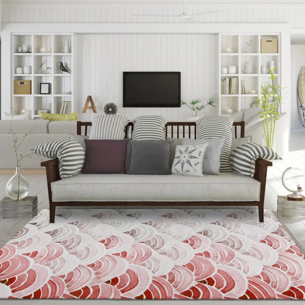 Remarkable Seabreeze collection has been created to inspire tranquility. Wow your guests with these versatile casual coastal rugs, stylish flat weave rug features vibrant colors with gradient movement in a variety of natural beach mosaic shapes and patterns. Featuring an ultra-soft and ultra thin pile, each rug is made with 100% polyester pile complete with a non-skid backing. Final crafting in USA using domestic processing on an imported substrate. They are UV Stabilized for indoor and cover outdoor spaces. Shake out or use straight suction with vacuum, do not use a beater bar. Machine washable in cold water and air dry, some sizes may be too large for a residential washing machine and is family and pet friendly.
