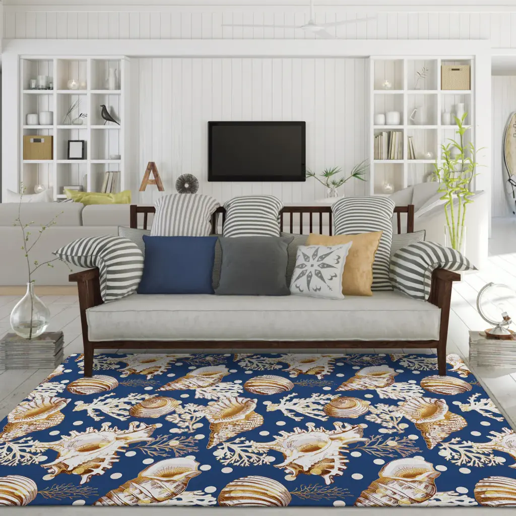 Remarkable Seabreeze collection has been created to inspire tranquility. Wow your guests with these versatile casual coastal rugs, stylish flat weave rug features vibrant colors with gradient movement in a variety of natural beach mosaic shapes and patterns. Featuring an ultra-soft and ultra thin pile, each rug is made with 100% polyester pile complete with a non-skid backing. Final crafting in USA using domestic processing on an imported substrate. They are UV Stabilized for indoor and cover outdoor spaces. Shake out or use straight suction with vacuum, do not use a beater bar. Machine washable in cold water and air dry, some sizes may be too large for a residential washing machine and is family and pet friendly.