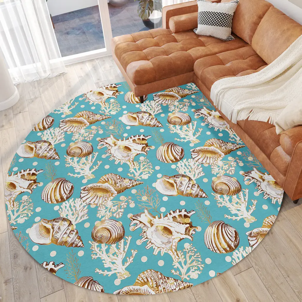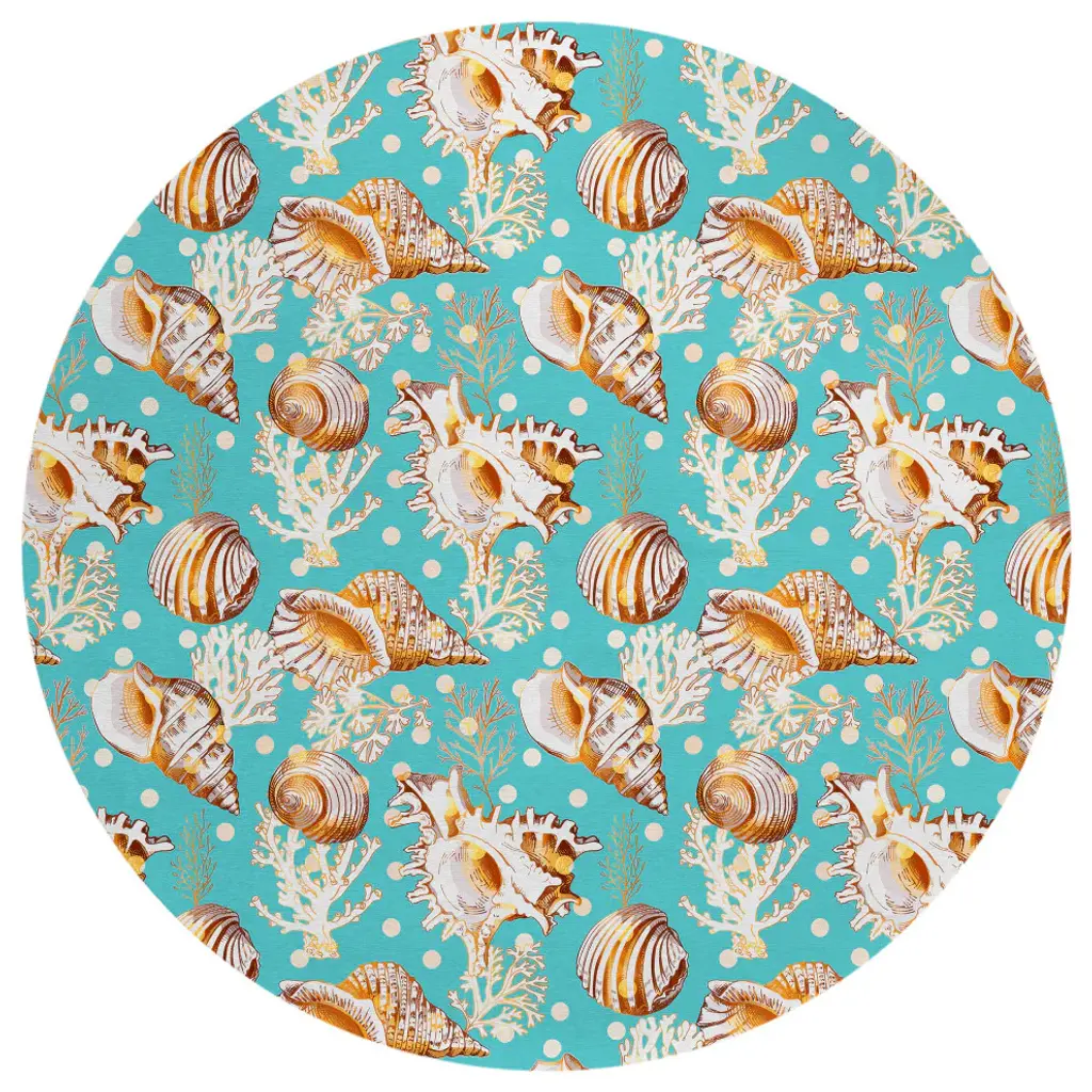 Indoor/outdoor Seabreeze Sz6 Teal Machine Washable 8' X 8' Round Rug