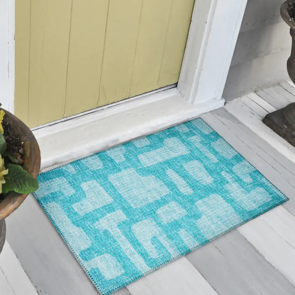 Indoor/outdoor Sedona Sn4 Robins Egg Machine Washable 1'8" X 2'6" Rug