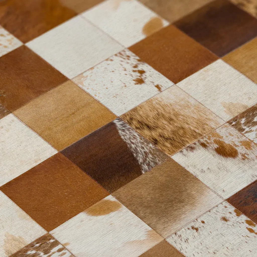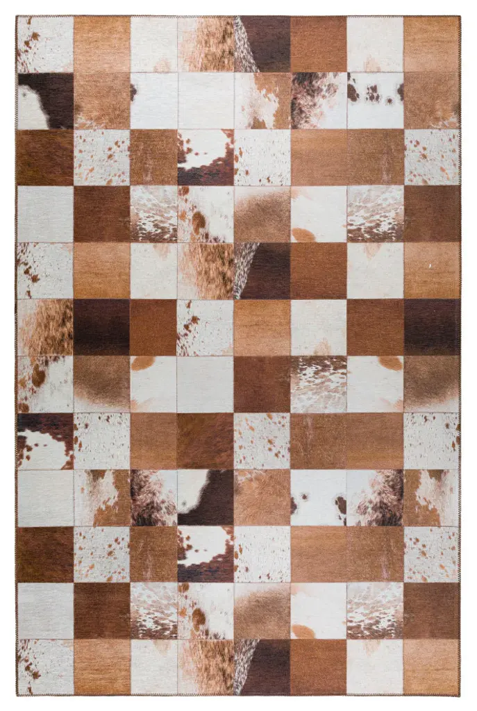 Durango is a faux hide patchwork collection. The details on these faux hide rugs look so real you will wow your guests. This stylish rug features neutral colors with gradient movement in a variety of mosaic shapes and patterns. Featuring an ultra-soft and ultra thin pile, each rug is made with 100% polyester pile complete with a non-skid backing. Final crafting in USA using domestic processing on an imported substrate. They are UV Stabilized for indoor and cover outdoor spaces. Shake out or use straight suction with vacuum, do not use a beater bar. Machine washable in cold water and air dry, some sizes may be too large for a residential washing machine and is family and pet friendly.