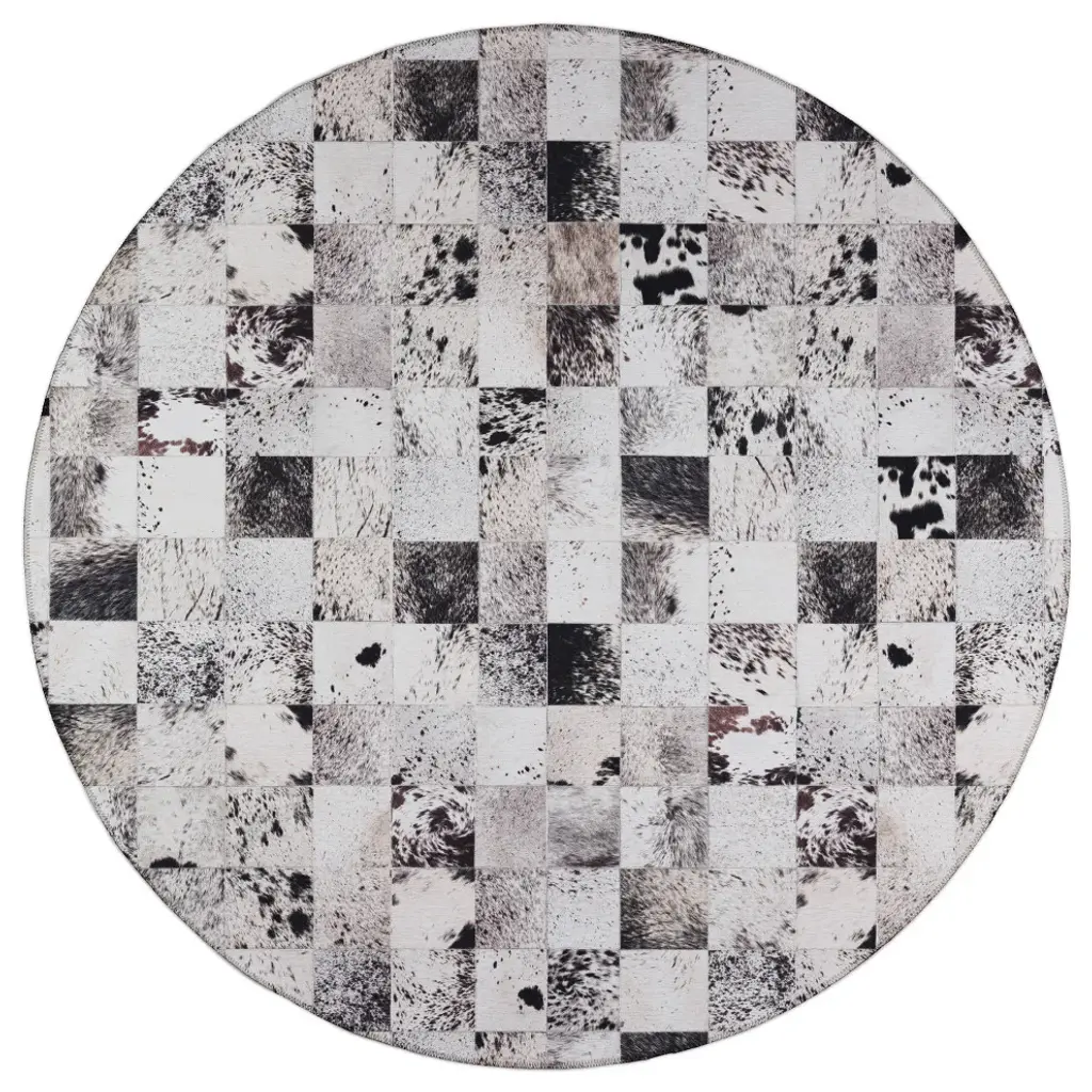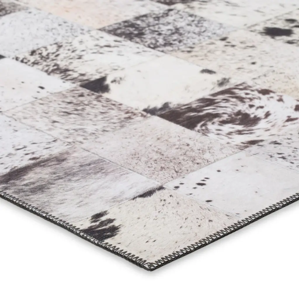 Durango is a faux hide patchwork collection. The details on these faux hide rugs look so real you will wow your guests. This stylish rug features neutral colors with gradient movement in a variety of mosaic shapes and patterns. Featuring an ultra-soft and ultra thin pile, each rug is made with 100% polyester pile complete with a non-skid backing. Final crafting in USA using domestic processing on an imported substrate. They are UV Stabilized for indoor and cover outdoor spaces. Shake out or use straight suction with vacuum, do not use a beater bar. Machine washable in cold water and air dry, some sizes may be too large for a residential washing machine and is family and pet friendly.