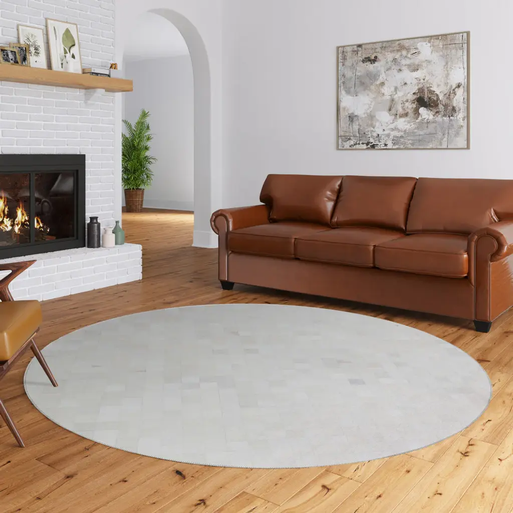 Durango is a faux hide patchwork collection. The details on these faux hide rugs look so real you will wow your guests. This stylish rug features neutral colors with gradient movement in a variety of mosaic shapes and patterns. Featuring an ultra-soft and ultra thin pile, each rug is made with 100% polyester pile complete with a non-skid backing. Final crafting in USA using domestic processing on an imported substrate. They are UV Stabilized for indoor and cover outdoor spaces. Shake out or use straight suction with vacuum, do not use a beater bar. Machine washable in cold water and air dry, some sizes may be too large for a residential washing machine and is family and pet friendly.