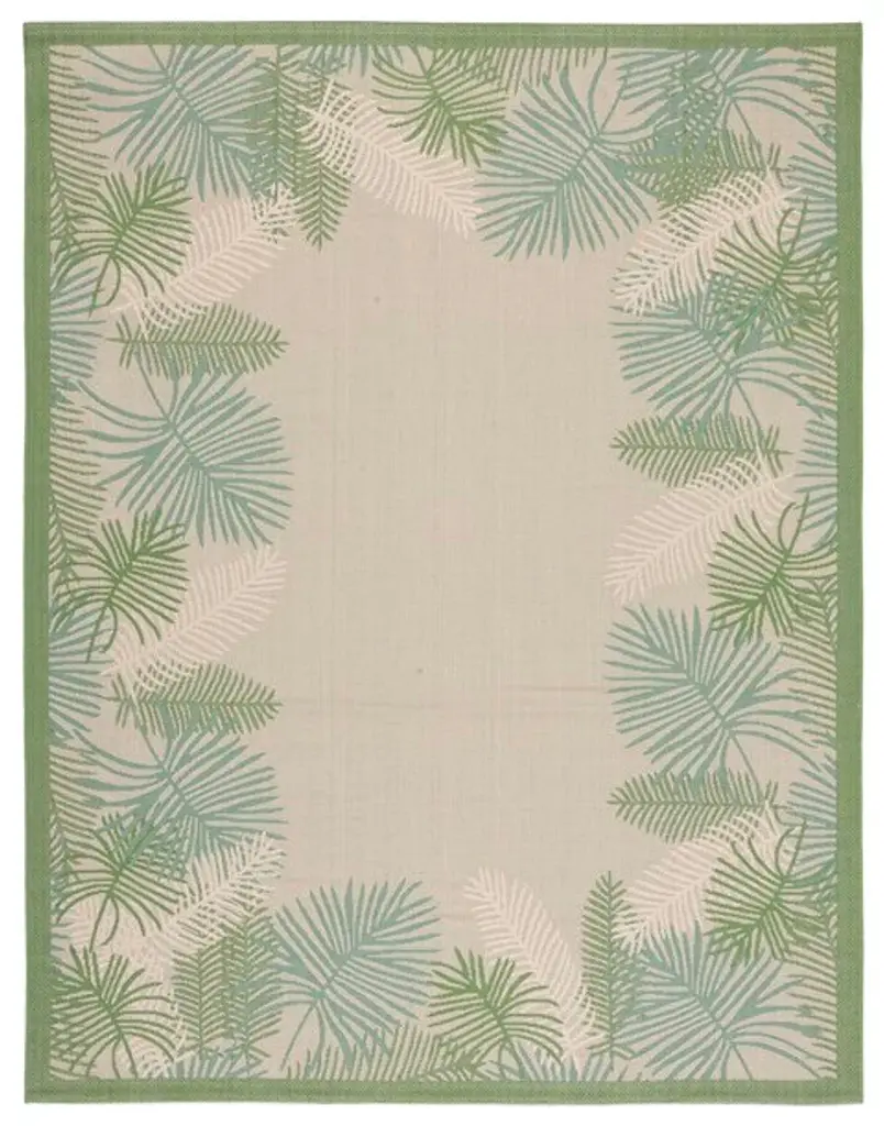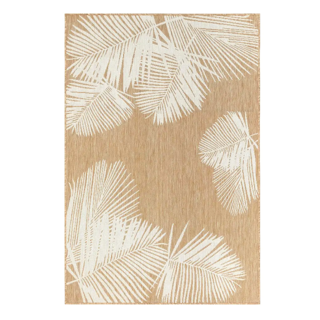 This Indoor/Outdoor Textured Palms Polypropylene Rug has the beauty and softness of a traditional pile rug, but it's made of 100% polypropylene to stand up to high traffic indoors and out. The palm frond design mixes complementary colors to create a look that will fit with any setting or furniture while adding just a touch of tropical flair. The yarn is space-dyed in multiple shades per strand, giving it a dimensional look, greater detail in the design and the ability to blend beautifully with any style.This handsome rug is versatile, colorful and functional. Durable enough to withstand heavy traffic, kids and pets, it's perfect for any area: porch, patio, sun room, kitchen and more. Hose clean. Pattern varies slightly by size. Rug pile is approx. ¼"H. Sizes are approximate. Imported.
