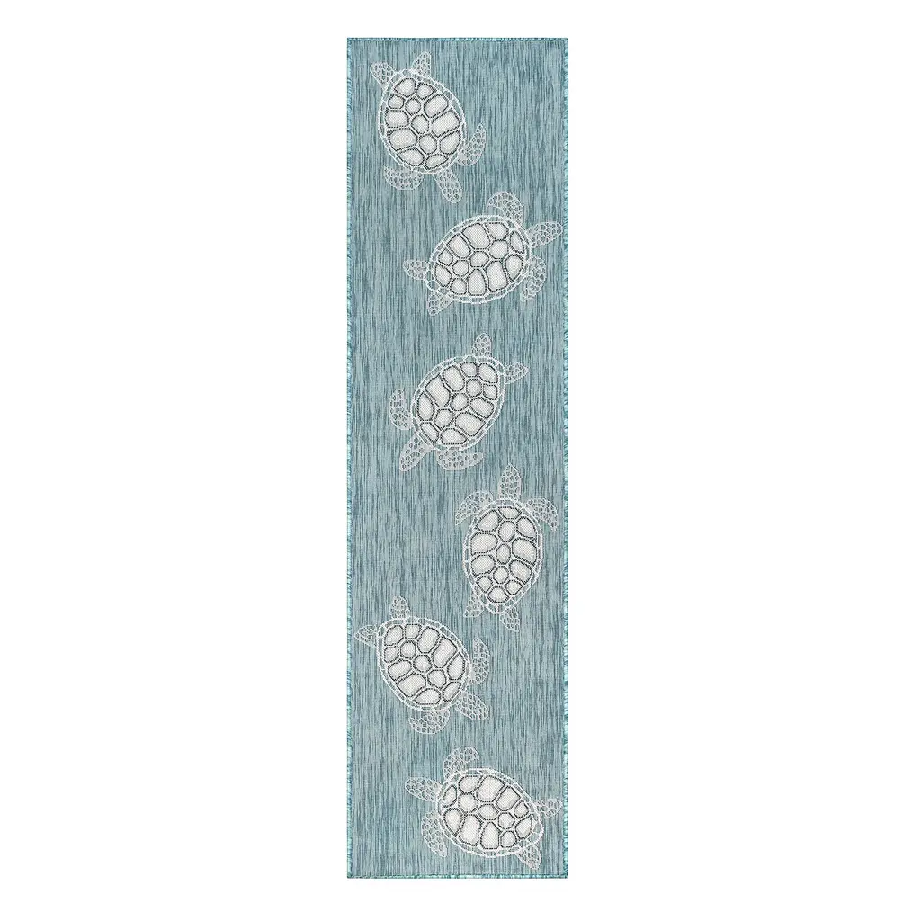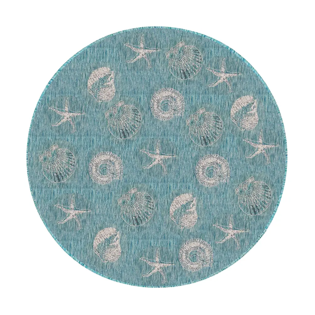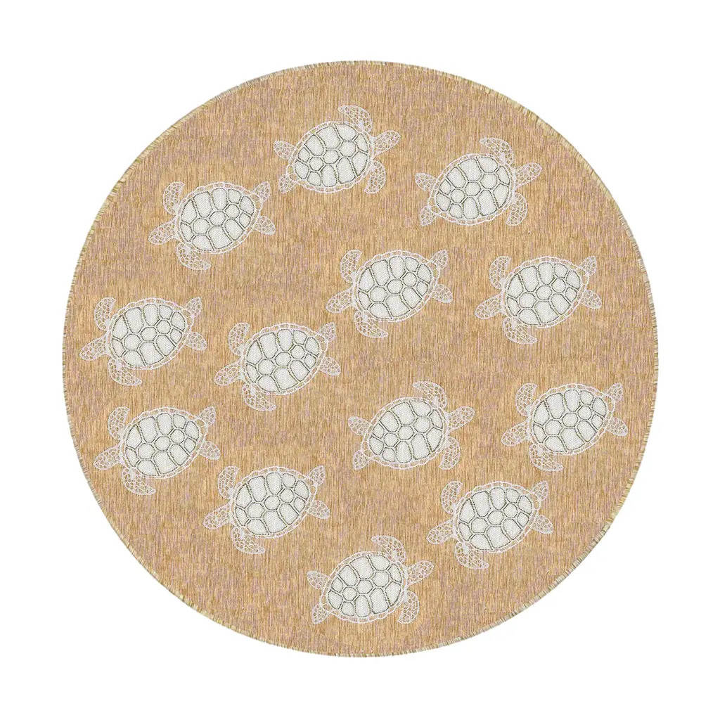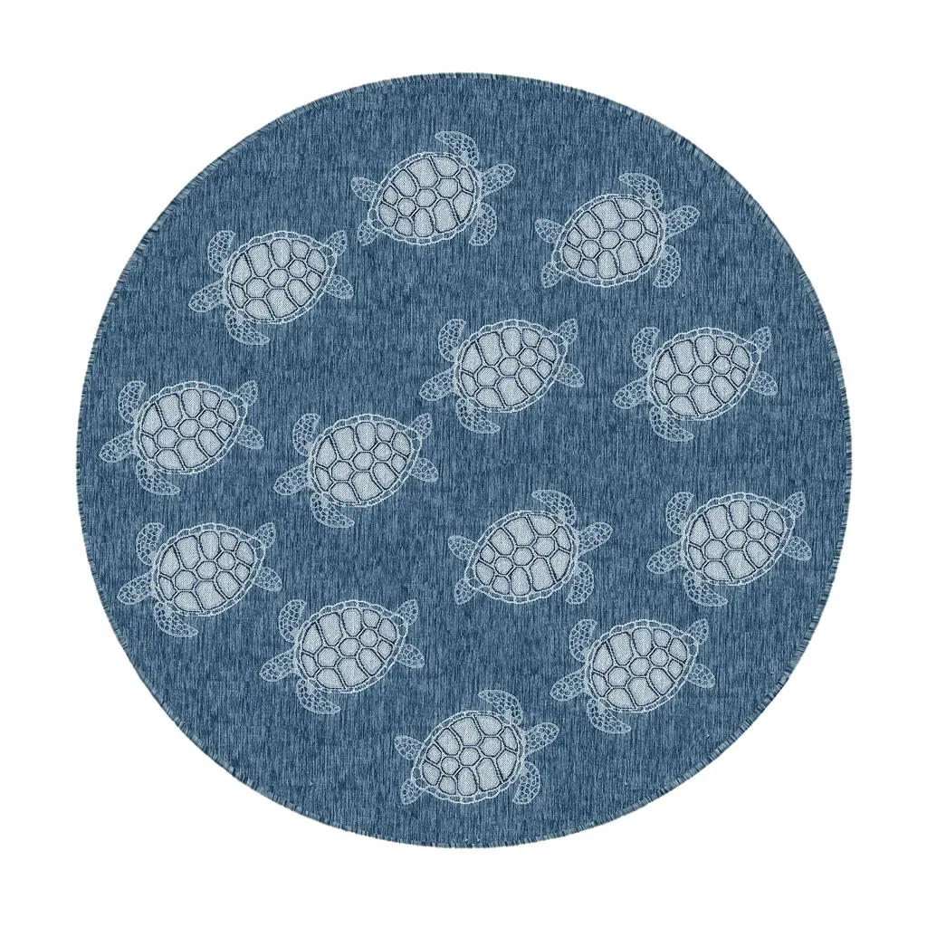 Indoor/outdoor Textured Sea Turtles Polypropylene Rug, 7'10" Round