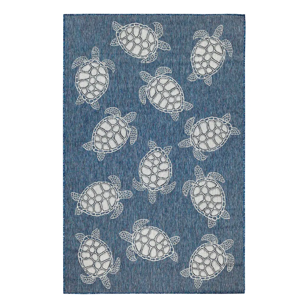 Indoor/outdoor Textured Sea Turtles Polypropylene Rug, 7'10" X 9'10"
