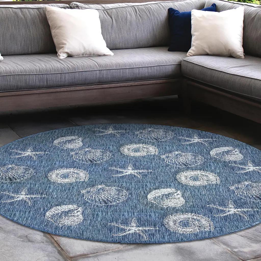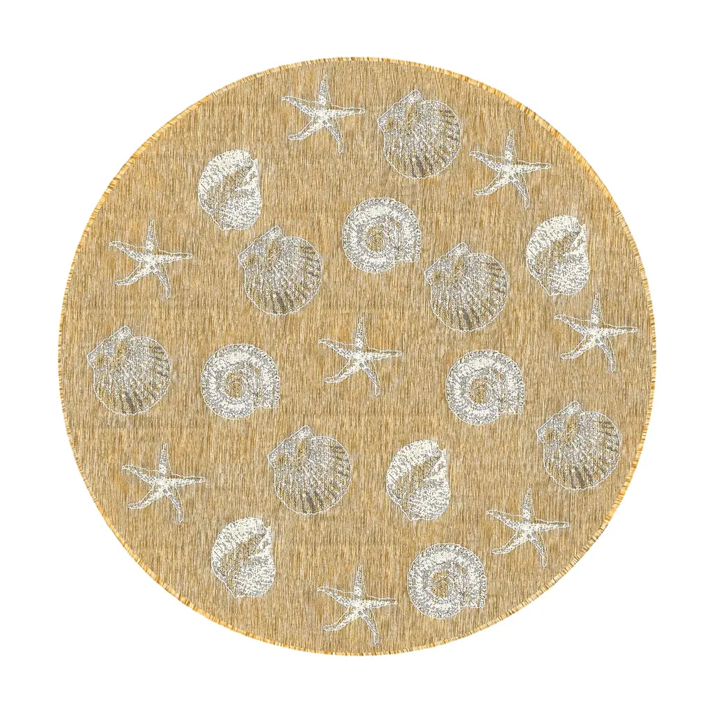 Indoor/outdoor Textured Shells Polypropylene Rug, 7'10" Round