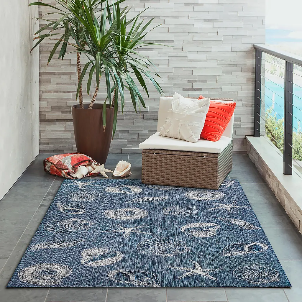 Indoor/outdoor Textured Shells Polypropylene Rug, 7'10" X 9'10"
