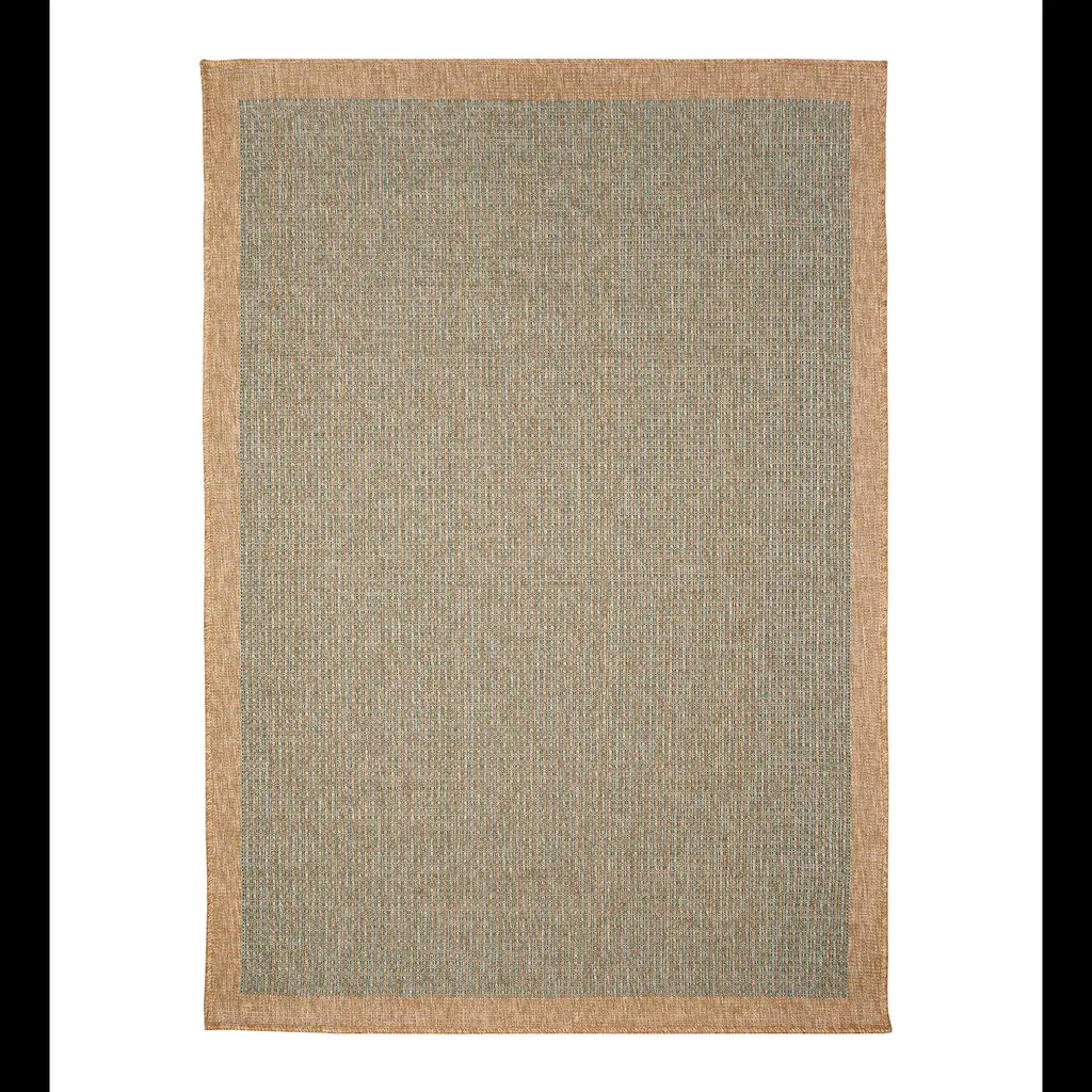 Add texture and comfort to any space with our Indoor/Outdoor Toulouse Border Print Rug. This area rug features a gorgeous textured weave in a border pattern with a tweed center that adds visual interest in neutral hues. Durable and stylish patterns create a relaxed easy vibe that works with any decor in your home. The rug is flat woven, weather-resistant, and treated for added fade resistance, making this rug perfect for indoor or outdoor placement. Soft and durable, this rug is ideal for your patio, sun room, or those high traffic areas such as your kitchen, living room, entryway, or dining room. Hose clean; air dry completely. Pattern varies slightly by size. Rug pile is approx. ⅛”. Sizes are approximate.