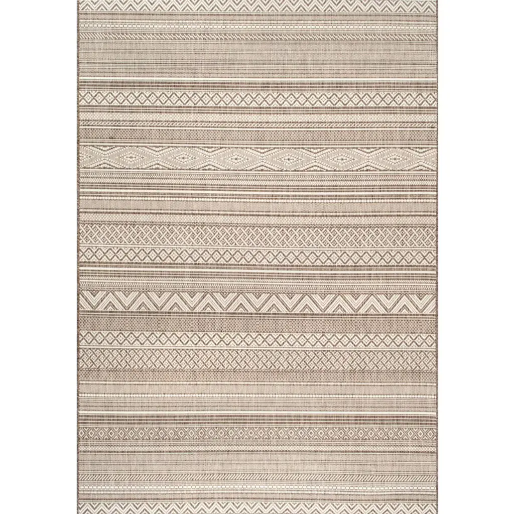 Indoor/outdoor Tribal Bands Rug | Taupe - 2' X 8'
