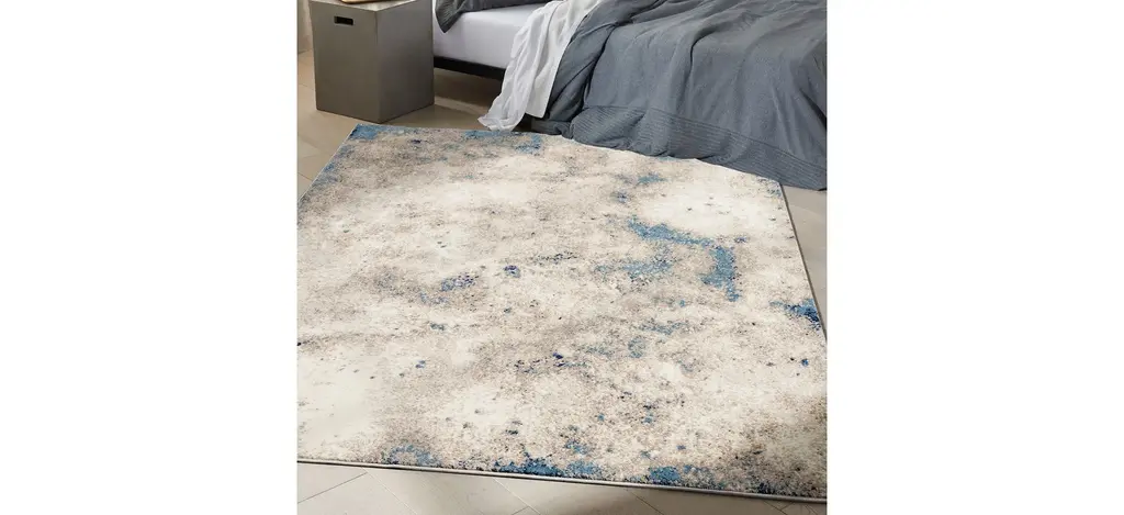 Let the soothing pools of color and the relaxed abstract pattern of the Indy rug put you at ease in any living space. With a soft, inviting texture and a neutral color palette grounded in a dreamy shade of blue, this low-profile, durable area rug is made for modern living.