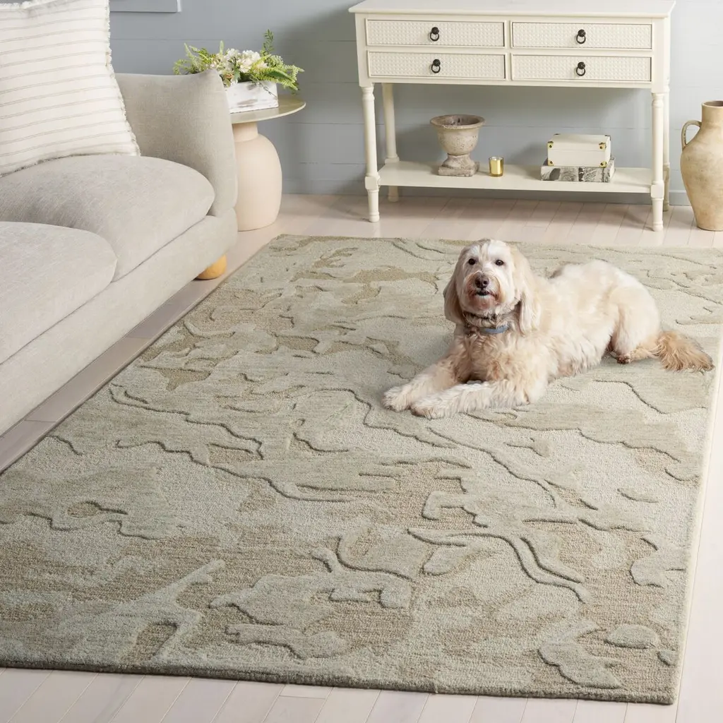 Discover the perfect blend of comfort and style with this hand-tufted area rug, meticulously crafted in India. Measuring 3 feet by 5 feet, its small rectangular shape makes it an ideal addition to any cozy space. The soothing green hue complements a variety of interiors, offering a touch of natural elegance. Made of 80 percent wool and 20 percent cotton, this rug provides a soft surface underfoot while ensuring durability for your space. The 1/2-inch height adds just the right amount of cushioned texture, enhancing any room's ambiance. With no specific pattern, it blends seamlessly into both modern and traditional settings, making it a versatile choice for your decor.