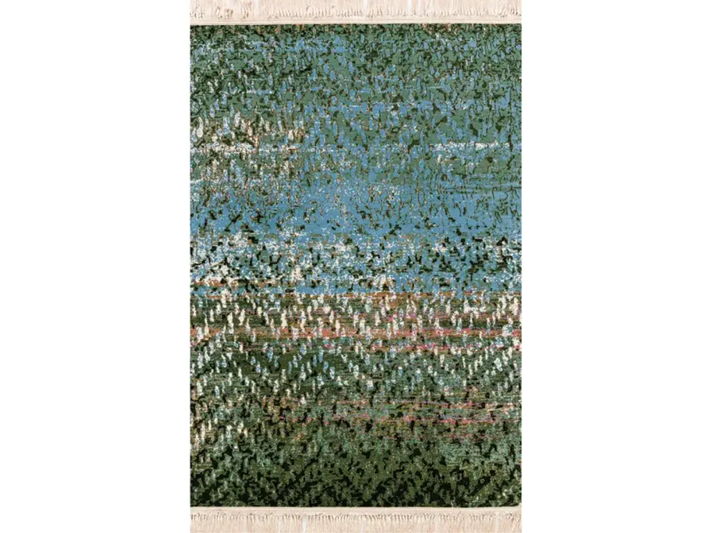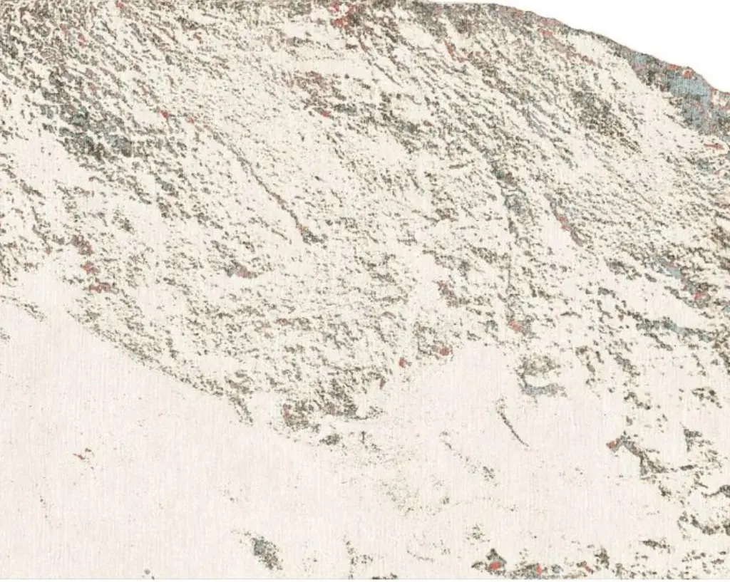 The raised silk details provide a luxe topography that blows across the wool ground, bringing movement to the design and your space. The texture was developed from a series of plaster sculptures, and the rough-cut, eroding side of INNER LANDSCAPE echoes the very craggy edges of these works.Hand-knotted in Nepal