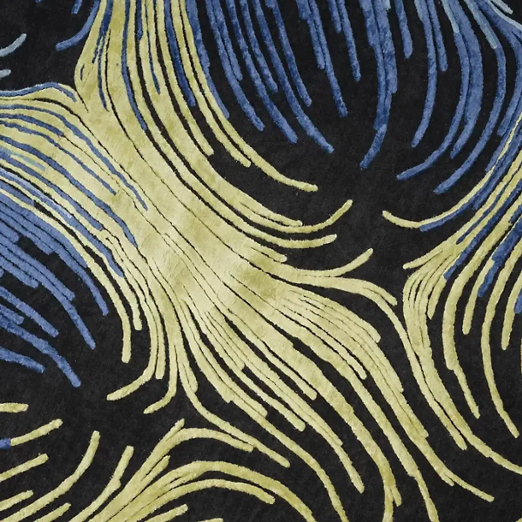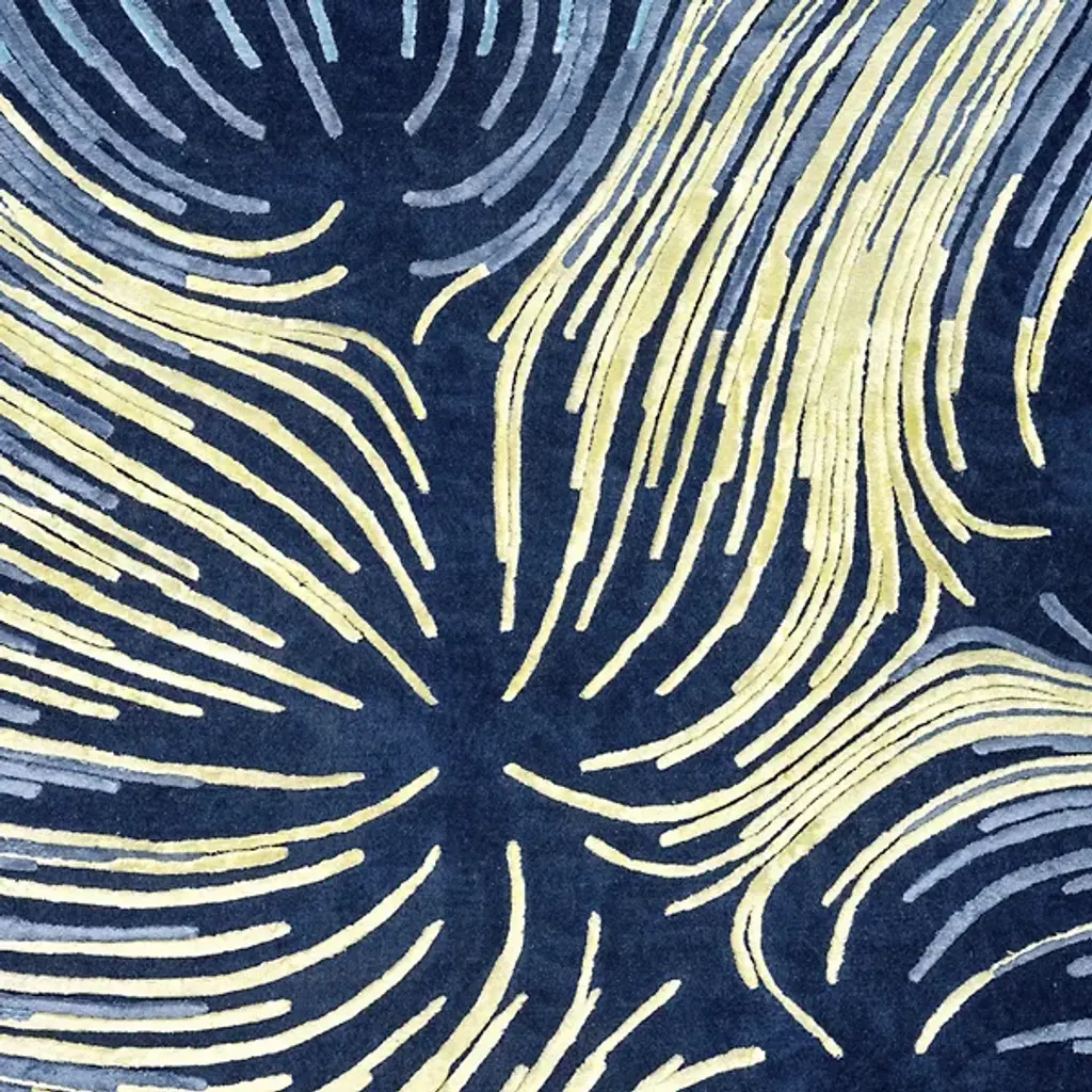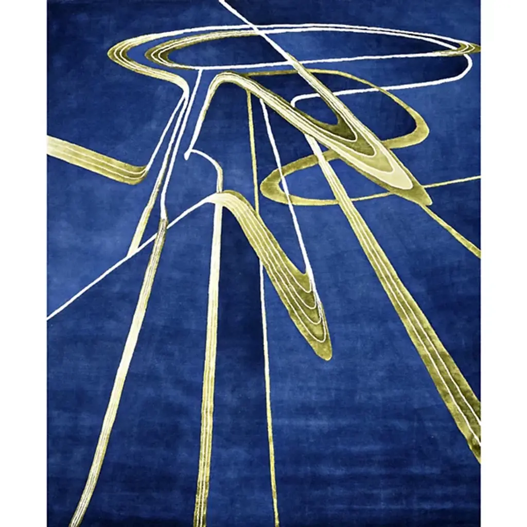 Add an intricate and personable character to interiors with the softly swirling patterns of the Interlace Area Rug from Illulian. An enticing study in contrasting colors from Zaha Hadid Architects, its dark blue background plays well with the swirls of light blue and bright yellow, creating a set of fluid shapes with an inviting appeal.