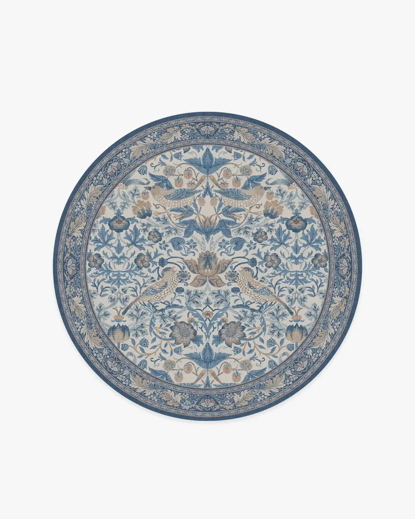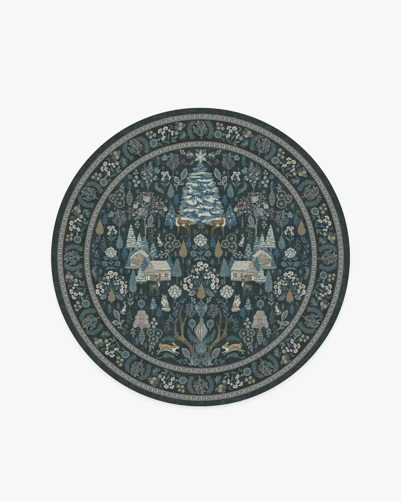 Unleash your inner unicorn with our Iris Apfel Dreamweaver Blue Multicolor Rug. Inspired by Iris' tendency to combine sophistication and fantasy, this dreamy tapestry design features whimsical flora and fauna in a plethora of azure hues. The rest of its dreamlike palette is complemented by blush pink, gold, verdigris green, cerulean blue, cream, and brown — all against a midnight blue background. Water-resistant, stain-resistant, and machine-washable. Rug colors may vary slightly according to your device and the lighting in your space.