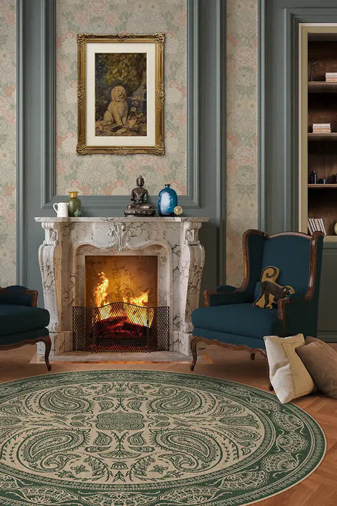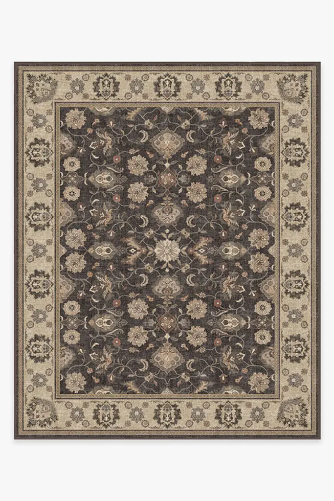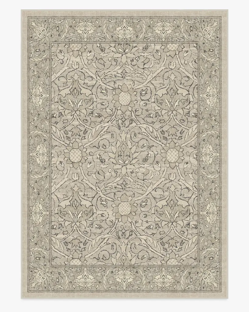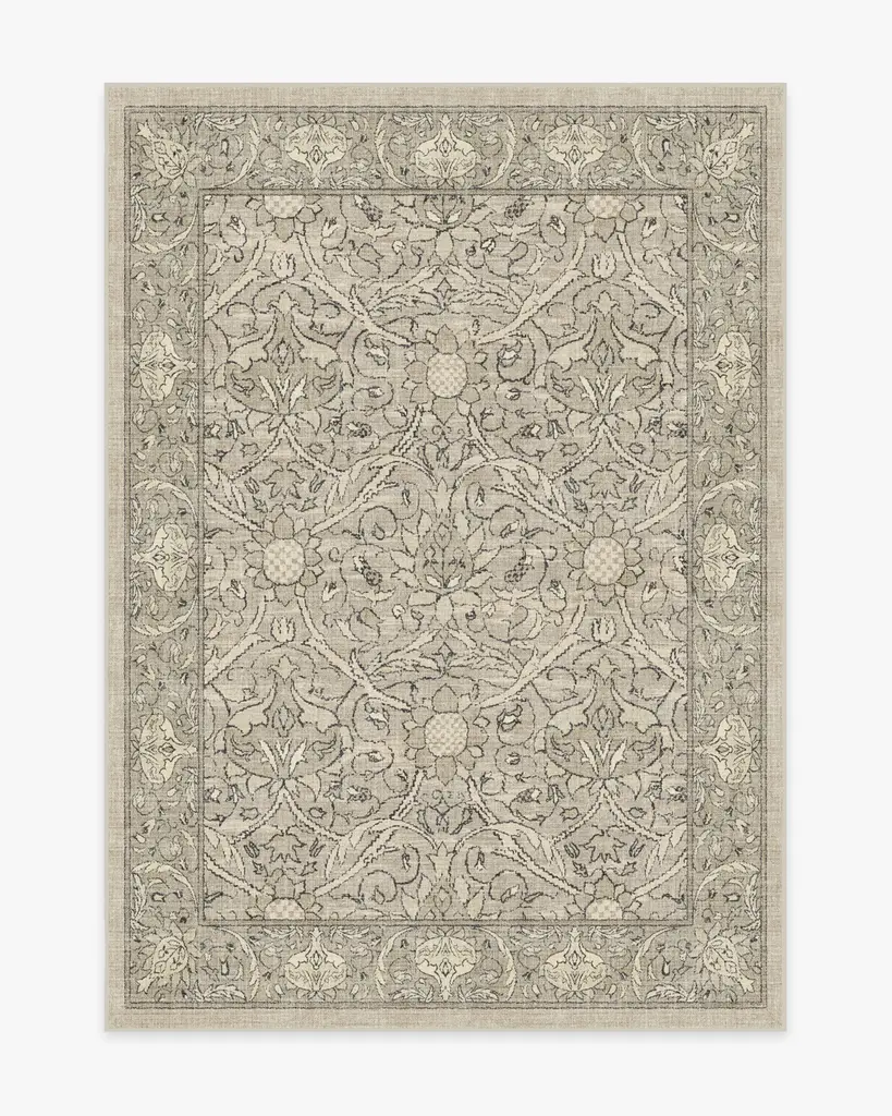 A blast from the past. Our Iris Apfel Summer of Love Forest Green Rug takes cues from paisley prints of the 1970s. The simple yet elegant colorway features forest green flowers and vines set against a taupe background. Water-resistant, stain-resistant, and machine-washable.