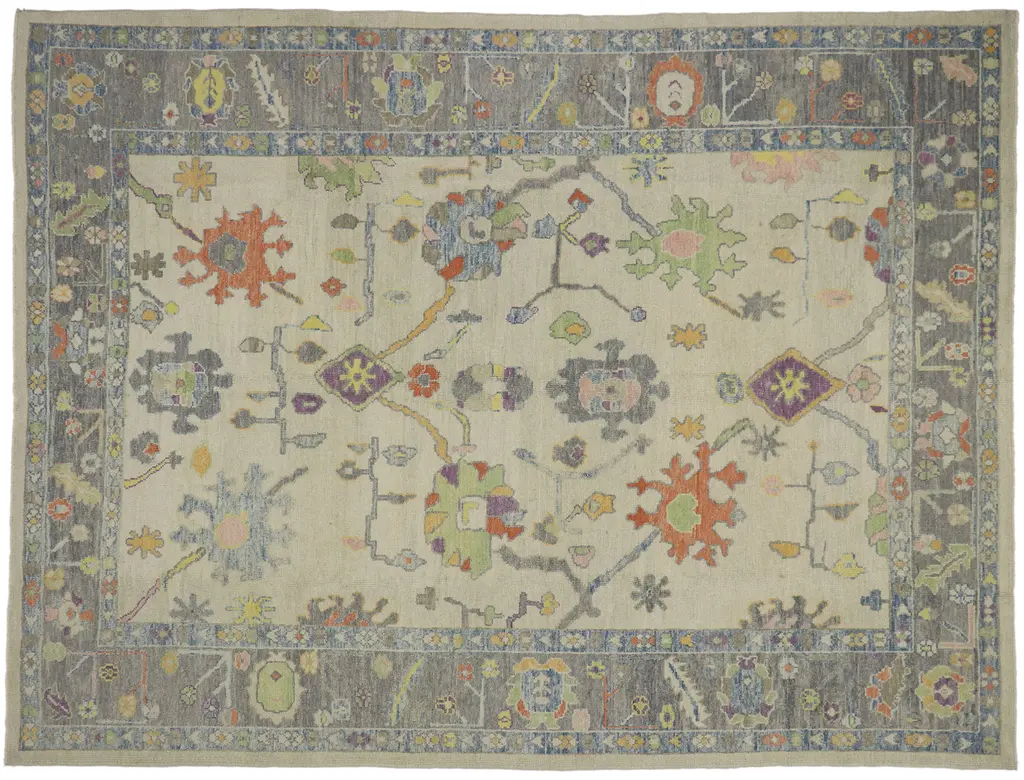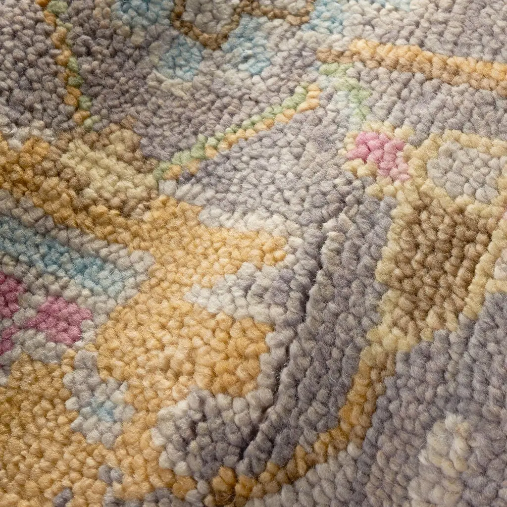 Part of our Masterpiece Collection that draws from the rich heritage of traditional, Turkish Oushak rugs. Woven and hand-knotted by master weavers in India, every detail – from the intricate motifs down to the finest yarn – speaks to the unparalleled quality and artisan craftsmanship of these vintage-inspired rugs. The classic Oushak gets a colorful, Annie Selke twist with the Iris Multi Hand Knotted Wool Rug. Set against a sophisticated grey backdrop, vibrant pops of yellow, blue, and pink make this rug truly eye-catching. The intricate design showcases an unmatched level of quality and craftsmanship, while the lush surface provides luxurious softness underfoot.