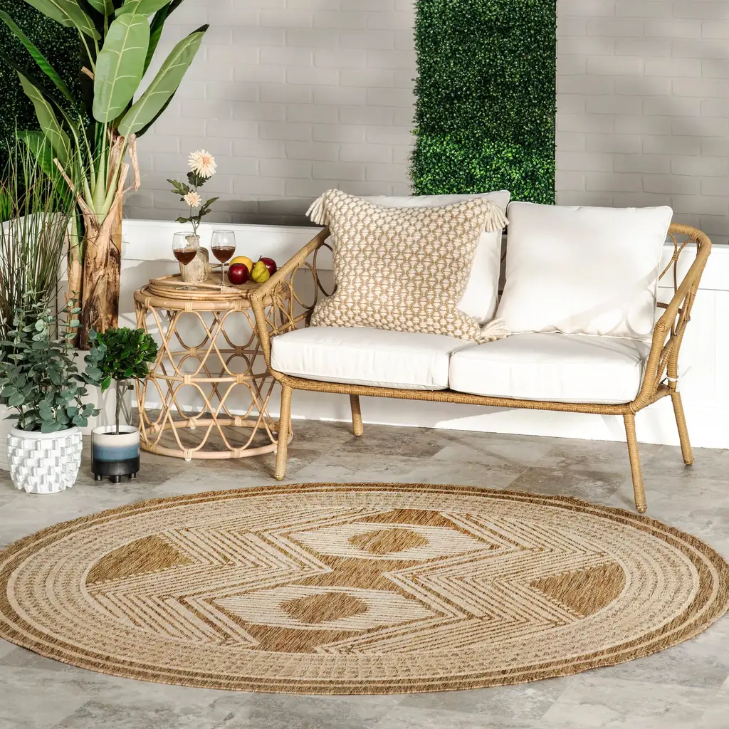 Iris Totem Indoor/outdoor Flatweave Rug | Light Brown - 6' 7"