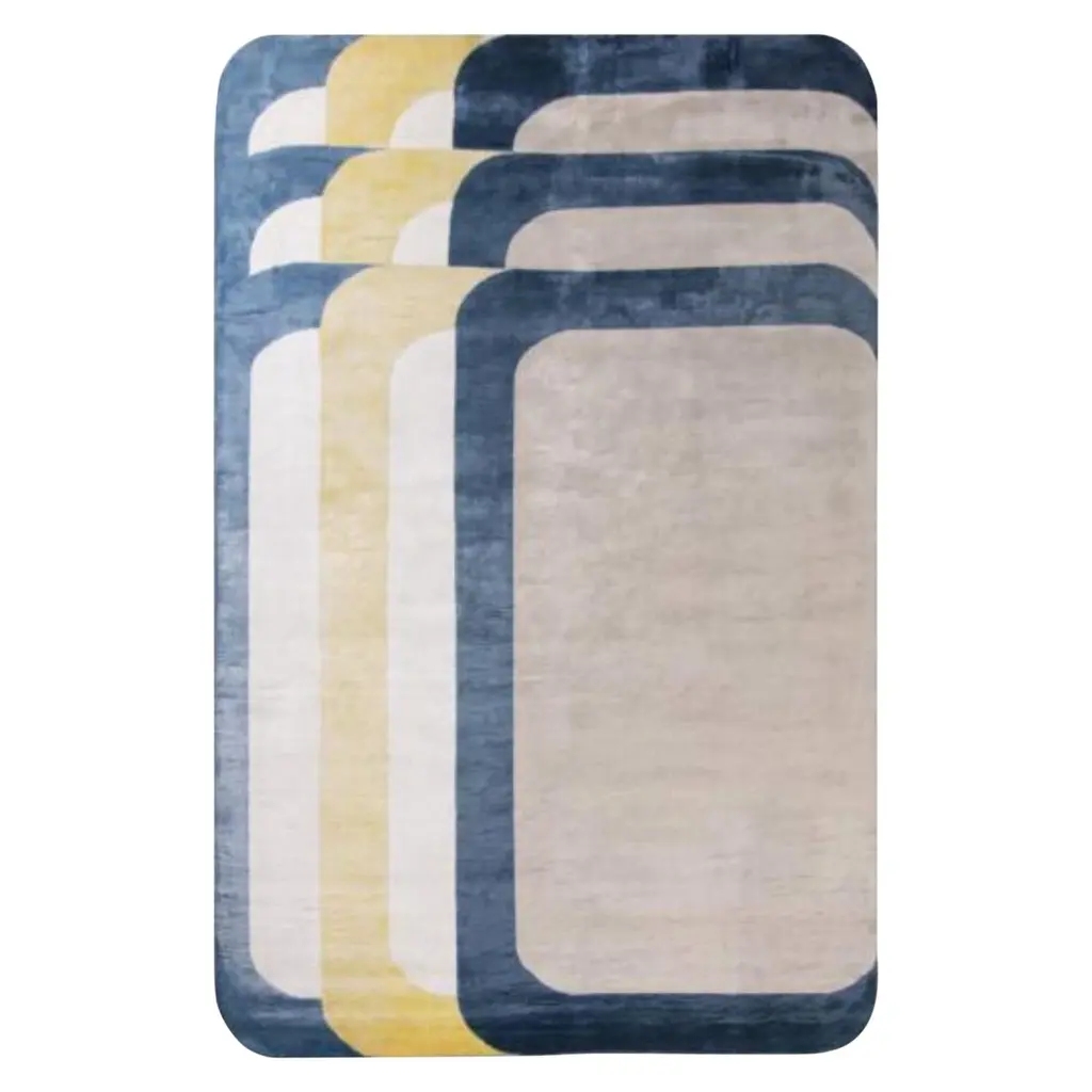 This rug is a playground of abstract geometric and organic shapes, stacked into a playful and ludic composition.Acrylic Wool with Certification from Indonesian Government provided safe for environment and SNI Standard, Handtufted Process, Limited Production, Customized size, using approximately 30 mixed Colors included stipple colors. Mix Methods Shaggy 2,5 cm, Embossed 1.3 cm - 2 cm, Loop, and Carving Embossed. RAG under this brand, lies a strong picturesque construct with solid contemporary HOME ornaments. a delicate kind of mix materials arranged in artistic motifs the vision pursued by establishment of high-end line with the highest quality.RAG will constantly focusing and innovating, monitoring craftsmanship behind the product.RAG provide a wider selection to your HOME ornaments.the design will be consisted of limited edition with higher build quality to deliver premium value in unique features.RAG HOME’s products are hand-tufted carpets and rugs inspired by Rannisa Soraya’s, the founder and creative director of the brand, love for travels, music, art and design. Taking inspiration from many forms, Soraya poured her random ideas and patterns from her head into cohesive and decorative designs bound to be the focal point of any spaces.The materials used for hand-tufted rugs contain acrylics in the yarn. We know it might not be the most sustainable materials however we believe it’s more ethical as opposed with use of real wool. Every RAG Home products are made sustainably and ethically since we employ craftmen from the village of Solo to help their economic developmentsRAG Home is conceived as an outlet for the founder to explore and pour her imaginagions into a decorative products fit for any spaces; be it living or commercial. We believe that rugs and carpets are the soul of the room and uniquely-designed rugs should be more accessible to many; hence the popularity of our products. As mentioned above, our commitment in hiring craftsmen from less developed village of Solo in Central Java, to further help the cractsmen’ and the villages’ economic development and growth, is our way of giving back to the community and to keep our diversity program in check.