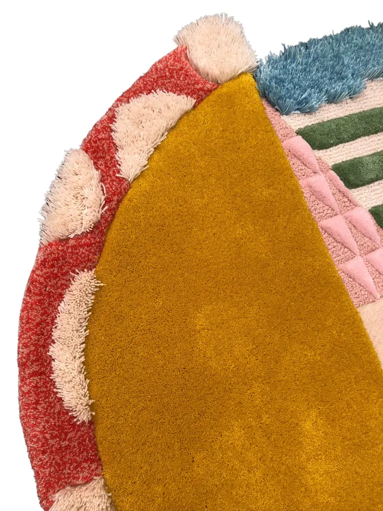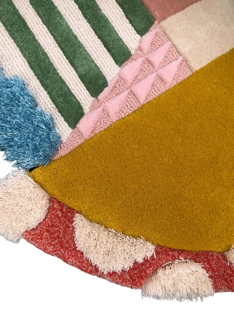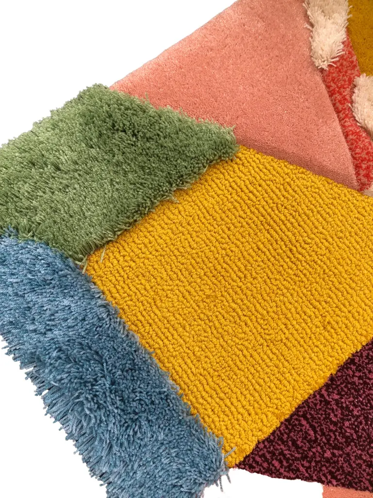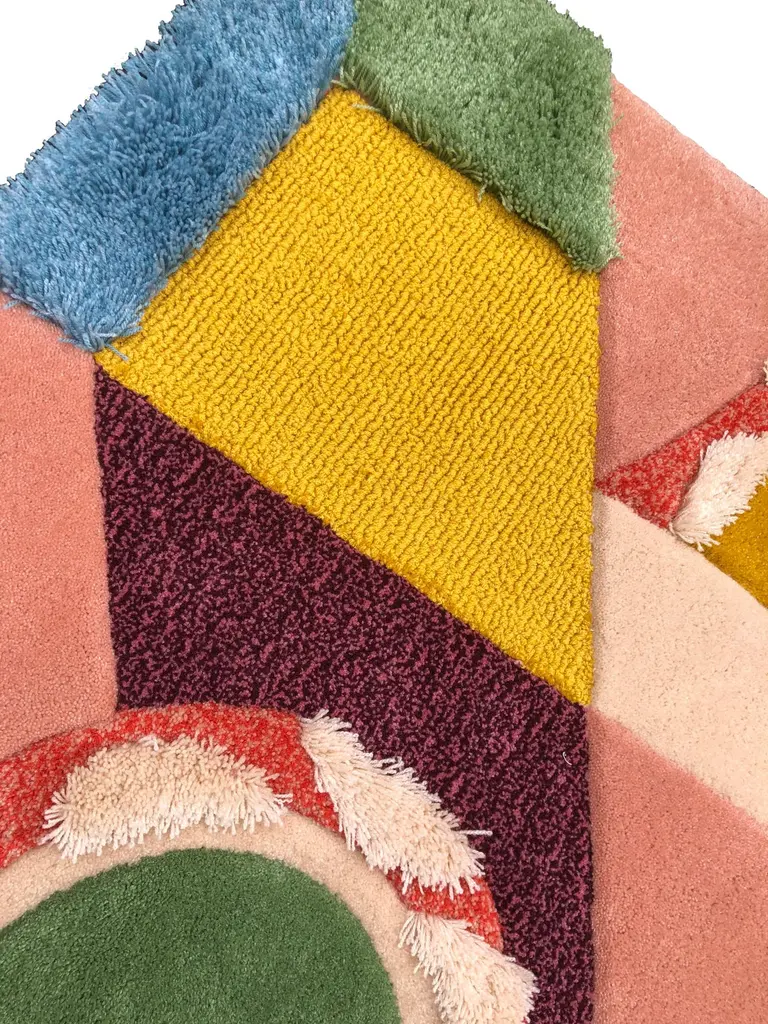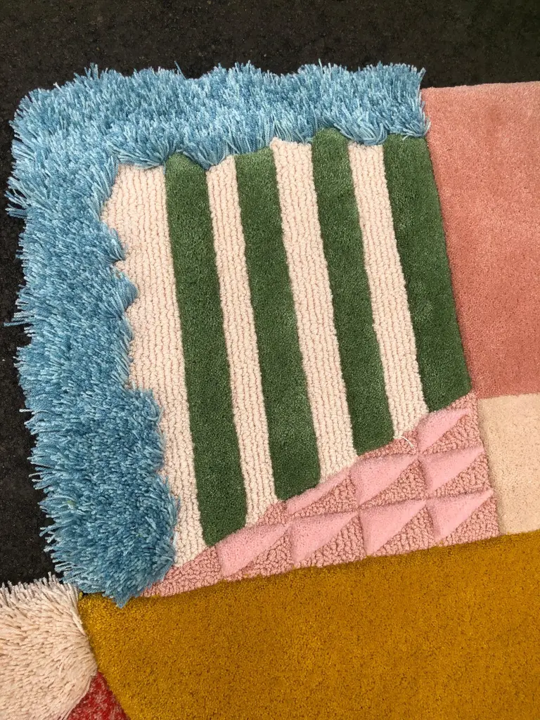 IRO IRO rug is made with a combination of pink blush, blue, green a touch of maroon Original Designed by RAG Home JakartaHand-tufted Carpet with mixed Carving Embossed Methods and Colours. It can be customised in size. Made by order. Produced only in limited quantity.RAG under this brand, lies a strong picturesque construct with solid contemporary HOME ornaments. a delicate kind of mix materials arranged in artistic motifs the vision pursued by establishment of high-end line with the highest quality.RAG will constantly focusing and innovating, monitoring craftsmanship behind the product.RAG provide a wider selection to your HOME ornaments.the design will be consisted of limited edition with higher build quality to deliver premium value in unique features.It can be customised in size and composition upon request. Proudly Made and Designed In Indonesia.