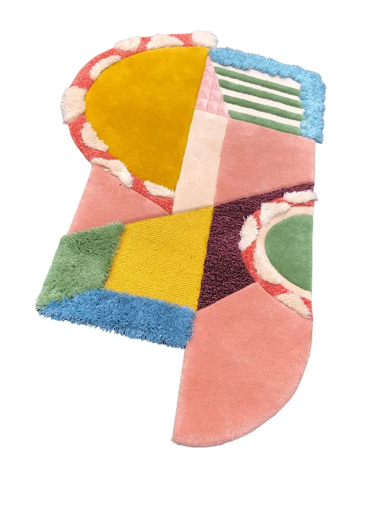 Irregular Shape Viscose Wool Rug Pink Blush, Blue, Green 'Iro-Iro' By Rag Home