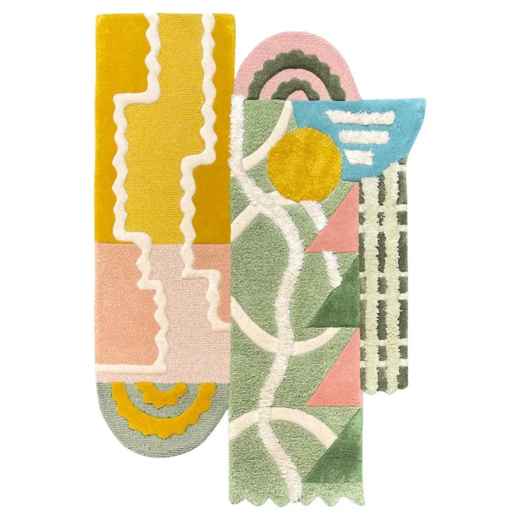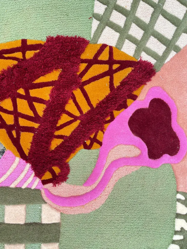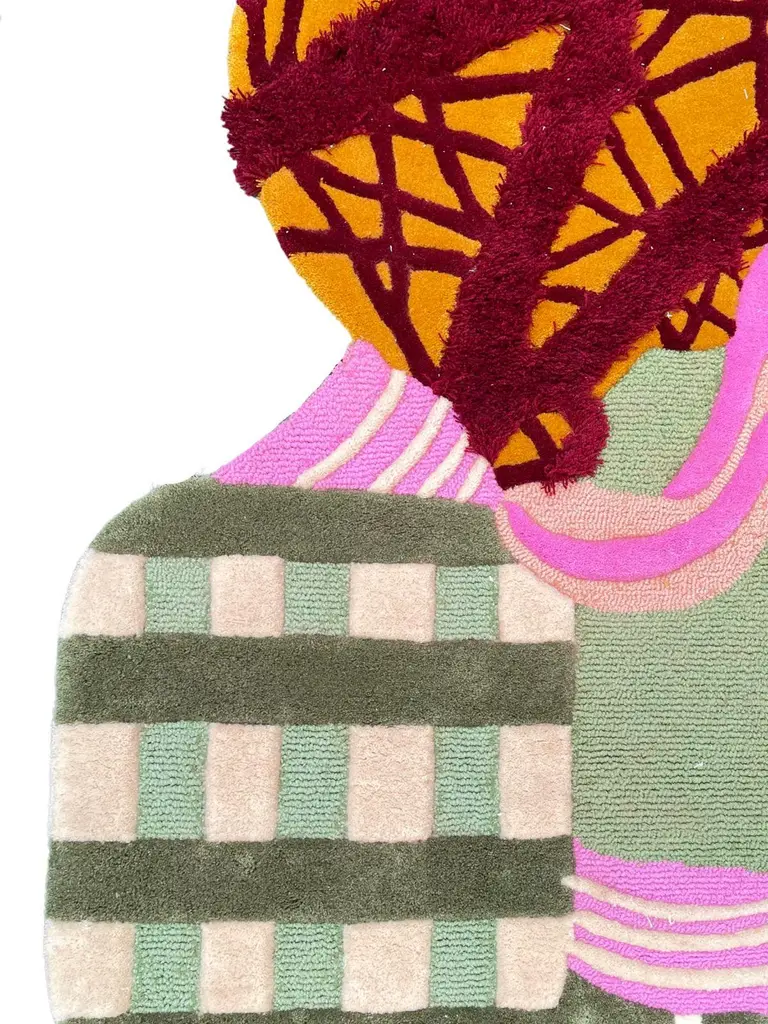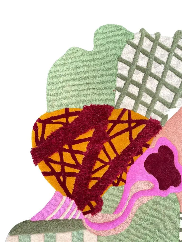 Hey Archie Rug is made with a combination of pink blush, green and a touch of maroon.Original designed by Rannisa Soraya RAG Home JakartaHand-tufted carpet with mixed carving embossed methods and colours. It can be customised in size. Made by order. Produced only in limited quantity.RAG under this brand, lies a strong picturesque construct with solid contemporary HOME ornaments. a delicate kind of mix materials arranged in artistic motifs the vision pursued by establishment of high-end line with the highest quality.RAG will constantly focusing and innovating, monitoring craftsmanship behind the product.RAG provide a wider selection to your HOME ornaments.the design will be consisted of limited edition with higher build quality to deliver premium value in unique features.It can be customised in size and composition upon request. Proudly Made and Designed In Indonesia.