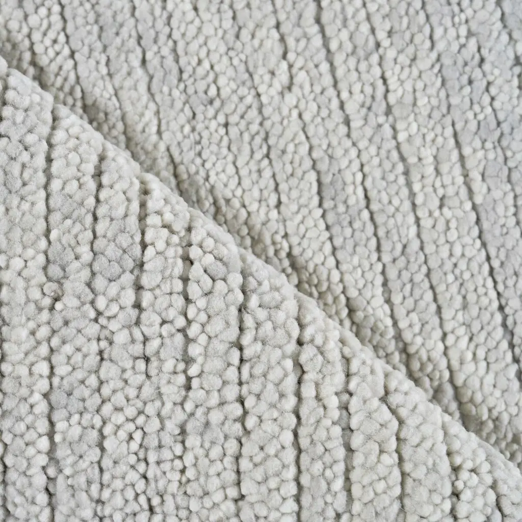 Thick yarn of Pure New Zealand Wool, this collection is designed to add a sophisticated and cozy feeling to any room. The color tones are soft and understated, the texture has a subtle wide ribbed effect. Truly a sink your toes into pile.