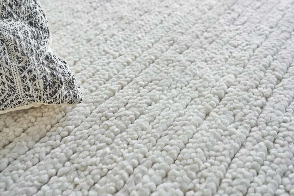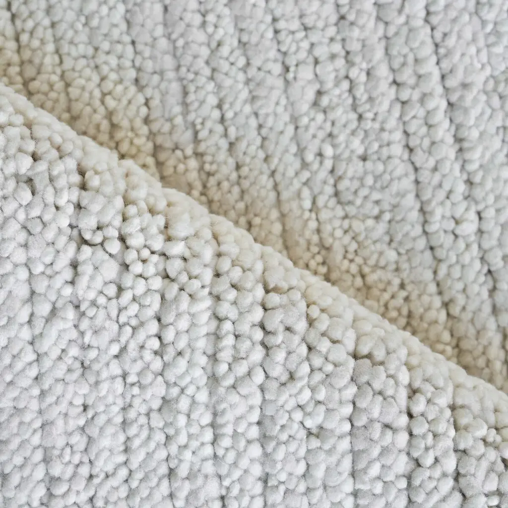 Thick yarn of Pure New Zealand Wool, this collection is designed to add a sophisticated and cozy feeling to any room. The color tones are soft and understated, the texture has a subtle wide ribbed effect. Truly a sink your toes into pile.