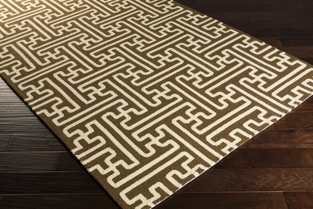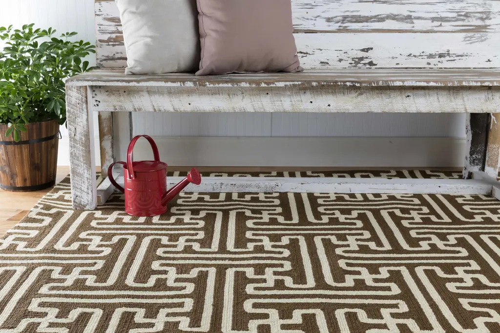 Collection: Irwinville Colors: Dark Brown, Ivory Construction: Hand Hooked Material: 100% Polypropylene Pile: Medium Pile Pile Height: 0.25" Styles: Outdoor Backing: Outdoor Latex Outdoor Safe: Yes Made In: China Thickness: 0.25" Price Range: $$$$$ (Most Affordable)